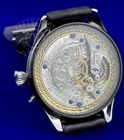 Exclusive "Marriage" watch - a masterpiece of watchmaking art where vintage movement gets new life in a modern case. Each piece is hand-assembled with attention to detail. These aren't just watches, but history reborn through skillful fusion of different eras. WE CAN CREATE UNIQUE CUSTOM WATCHES FROM SCRATCH ACCORDING TO YOUR DESIGN IN A SINGLE PIECE. Message us! Want to participate in creating your unique skeleton watch design? Share your ideas and after careful work, we'll present you with your unique design. The dial is adorned with the mysterious "Haab" calendar of the ancient Maya - a unique testament to the wisdom of this ancient civilization, where each symbol holds the secrets of time. The exquisite tricolor dial combines silver plating and gold plating, creating a harmonious contrast of ancient glyphs. The center features an artistic depiction of a Mayan deity, symbolizing the connection of times and the cyclical nature of existence. The hands are crafted using the stamping method. The watch mechanism demonstrates the highest mastery of hand engraving with elegant silver plating. The case is made of stainless steel with titanium nitride coated rings. Each detail of this timepiece is a work of art, combining ancient wisdom with modern watchmaking craftsmanship. CASE : Stainless steel with rings covered with a PVD coating (titanium nitride); STRAP : Included, black band, 22mm, genuine leather; SIZE : Diameter: 48mm; Thickness: 15.5mm; CRYSTAL : Mineral glass front and back; SHIPPING : Within 2 business days after payment; PAYMENT : According to eBay rules; RETURN POLICY: If you are not completely satisfied with your purchase, return the item within 30 days of receiving your watch for an exchange or refund. Buyers with zero rating require prior approval. At the heart of all our watches are vintage movements manufactured since the 1890s, averaging around 100 years old. All movements installed in watches have been restored by our experienced craftsmen. Complete servicing and careful restoration give them new life. Antimagnetic steel case protects this masterpiece. The designer dial is adorned with cold jeweled enamel, each hand perfectly fitted by a master. SPECIFCATIONS: Mineral crystals (sapphire installation possible); Handcrafted genuine leather strap; Custom dial design available; All dials are on feet. ADDITIONAL SERVICES: 1) Replacement of mineral crystal with sapphire one: Starting from $60 for front crystal (from 38mm); Starting from $40 for back crystal (from 37mm). Crystal diameter varies for each watch, please inquire via private message for exact cost. 2) Custom engraving available on case back. Clarify the price in the message. 3) You can add an exclusive branded wooden box to your order for 50 USD for a WOW effect ! About us: Extensive experience in creating skeleton watches since 2011. Each design is crafted by masters of their craft, investing experience, knowledge, and soul. IMPORTANT CARE RECOMMENDATIONS: Not water-resistant, keep away from moisture; Avoid bumping or dropping the watch; Wind carefully without excessive force; Set time clockwise only; Keep away from magnets; Service every 2-3 years; Acceptable daily rate variation ±3 minutes.