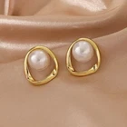 Elevate your elegance with these Imitation Pearl Earrings for Women. Featuring a gold-colored round stud design with Korean-inspired delicate and irregular patterns, these earrings stand out with their unusual and fashionable look. Perfect for daily wear, parties, or gifting. Lightweight, stylish, and comfortable for all-day use.