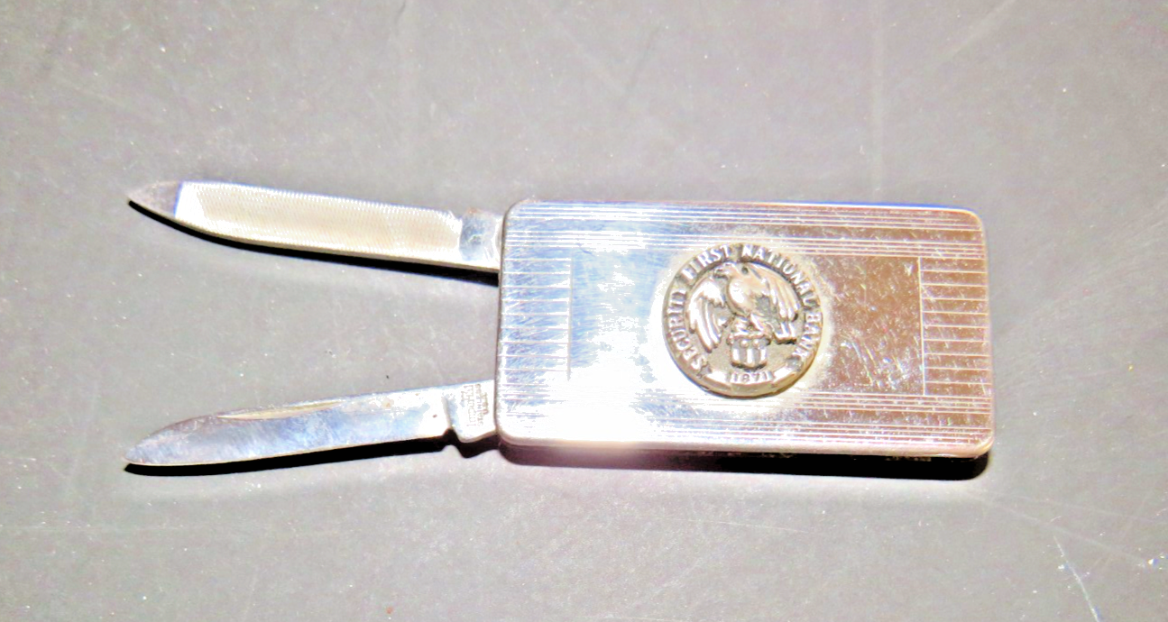 This particular money clip is quite rare & unique. Crafted for practicality and durability, the Imperial Money Clip Utility Knife is a versatile tool that combines functionality with style. It features a sleek stainless steel handle paired with a silver-tone finish, ensuring a timeless look that's as robust as it is refined. The knife boasts a single plain edge pen blade, designed for precision and ease of use in a variety of situations. Not just a knife, this multi-tool includes a nail file, making it an essential accessory for both everyday needs and emergency situations. Its compact blade range, under 2.75 inches, ensures it's both a efficient and safe utility item. Whether for personal use or as a thoughtful gift, this Money Clip Utility Knife from Imperial is an intelligent choice for anyone seeking a reliable and multipurpose tool. I ship immediately upon payment.