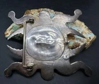 You are looking at an impressive LARGE & Heavy vintage Navajo “Three Hogans Shop” handmade & signed super thick cast sterling silver belt buckle set with gorgeous turquoise and mosaic multi gemstone inlay. Notice the wonderful bold design on this rare statement piece and also the spectacular micro inlay between the turquoise. This buckle was Handmade and signed on the back with the 3 Hogans trading shop hallmark. Their jewelry is well known, highly collectible & rare to find. I added some pictures for you to see including measurements. Again, this is a very big & heavy buckle. It weighs a hefty 194+ grams. Such an impressive rare find. This buckle will make a great addition to any Native American or southwestern jewelry collection. You won’t find another like it. Take advantage of this opportunity to own a rare Native jewelry piece. Thanks for looking and please make sure to check out my other listings.