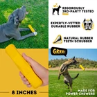 WB Chew Stick Unbreakable Design for Aggressive Chewers - Crafted with heavy-duty, industrial-strength rubber, toys withstand the relentless chewing and playing of even the most powerful dogs. Ideal for large breeds and intense chewers, our proprietary rubber is lab-tested for maximum durability. It’s as close to indestructible as a dog toy can get. Loved by Big Dogs - YELLOW (HIGHLY VISIBLE COLOR FOR DOGS) - The unique, engaging natural rubber & bright yellow color make toys irresistible to dogs, ensuring they are obsessed from the moment you unbox it. Save Money on Dog Toys - Say goodbye to constantly buying new toys! toys are chew-proof and built to last, outlasting other dog balls that get shredded in days. Our Demolish-Free Lifetime Guarantee ensures you only need to buy once. The only risk is not giving it a try. Top Safety Standards - toys meet the highest safety standards. Made from safe, non-toxic natural rubber and 3rd party tested, they ensure your dog’s health and your peace of mind. Promote Healthy Chewing Habits - toys are designed to turn destructive chewers into engaged players. Their irresistible shape, enticing bounce, and rugged construction provide great dental health benefits, whether fetching or power chewing. Perfect for mental stimulation, exercise, and training, they keep your dog happy and healthy. Lifetime Demolish-Free Guarantee - We believe dog toys should be built to last. If not, you shouldn’t have to pay for them. Our hassle-free, lifetime guarantee offers unmatched confidence in our products. Great toys backed by exceptional service.