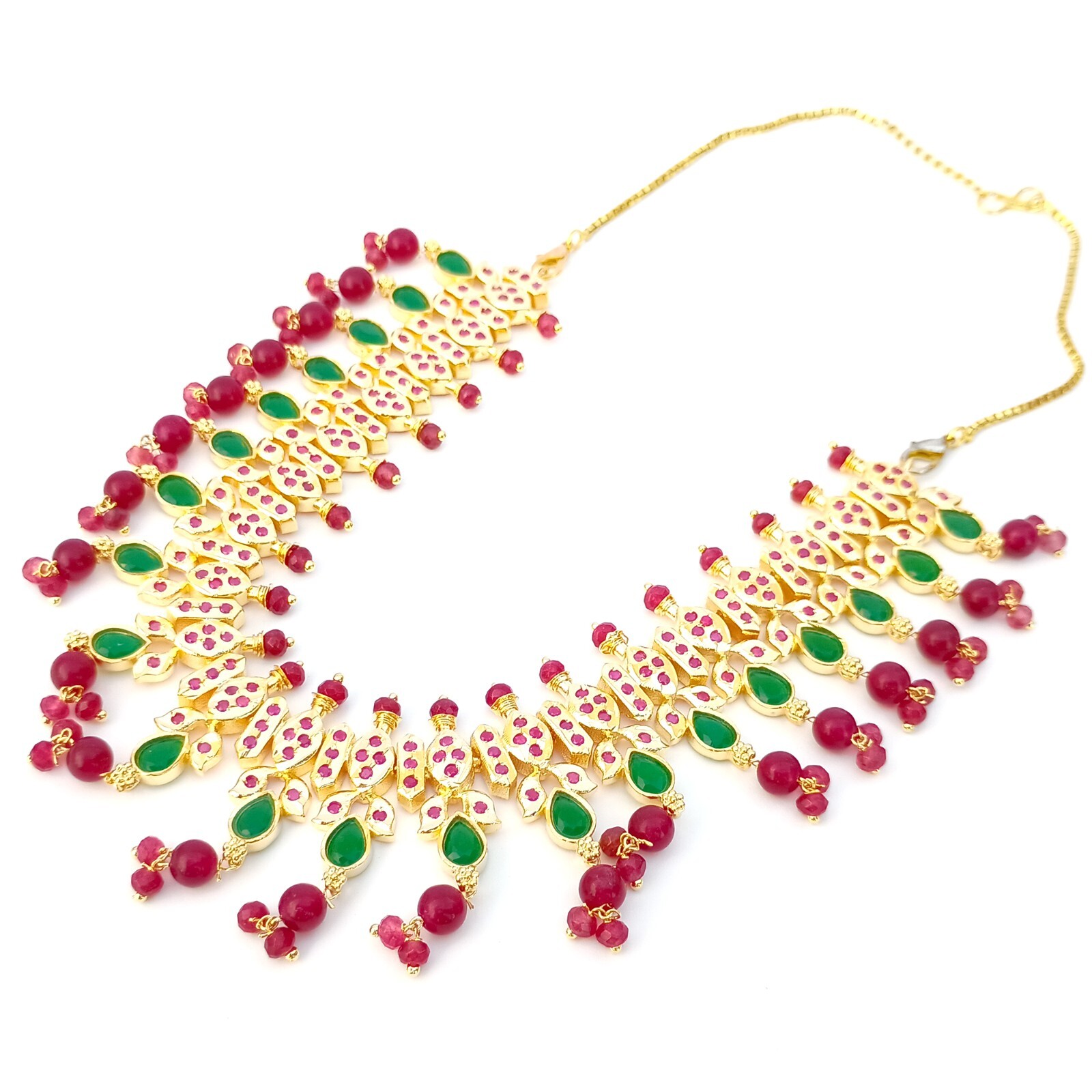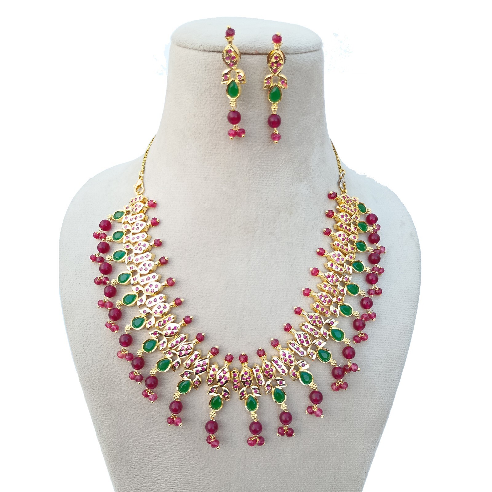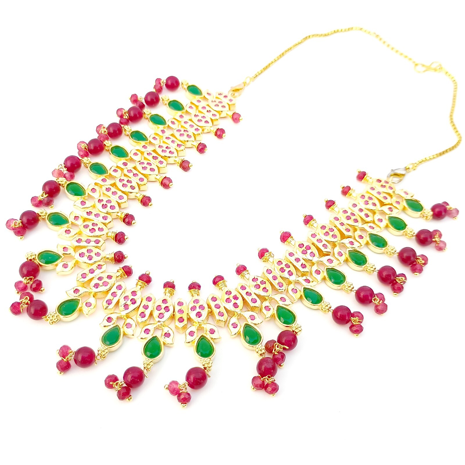 Gemstone........ Ruby - Emerald - Pearl Without Chain Length in inch - 4.5 inch Approx. With Chain Length in inch - 9 inch Approx. SKU- 167 ✨ HIGH QUALITY: We take pride in crafting each piece by hand, using only the finest materials. Our products undergo rigorous sanitization processes to ensure your safety and satisfaction. ✨ DAZZLING: Our handmade necklace exudes a superior charm, effortlessly elevating your look for any occasion. Whether you're at the office or out for an evening event, its minimalist yet boho-inspired style complements every outfit with grace. ✨ OUR SERVICE: Your satisfaction is our priority. Should you have any questions or concerns, our dedicated team is here to assist you promptly. Expect a response within 24 hours, ensuring a seamless shopping experience. Indulge in the splendor of our Long Handmade Necklace, a timeless statement piece that embodies the beauty of Indian craftsmanship and style.