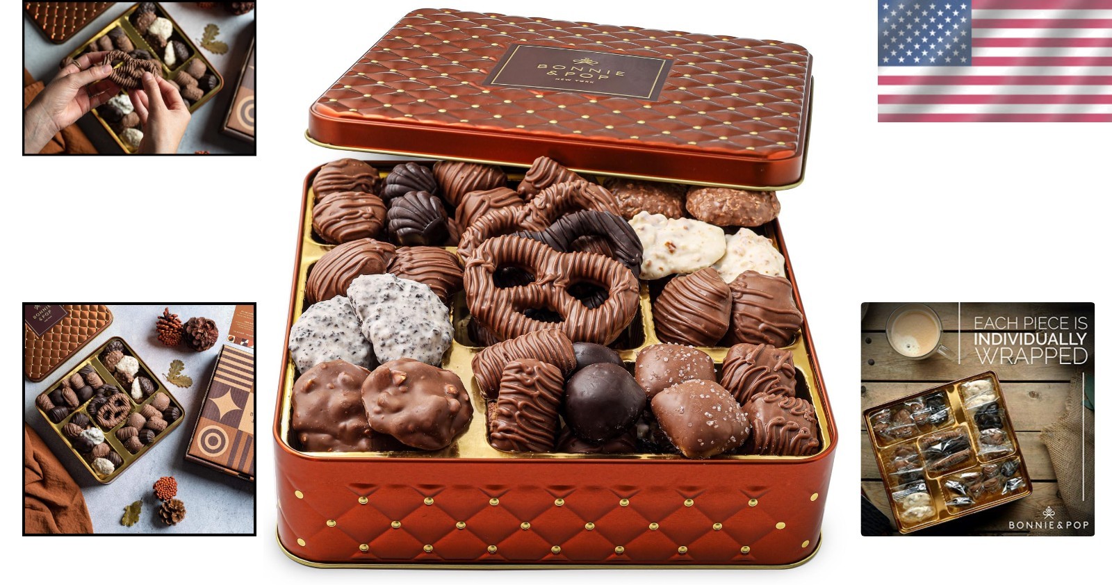 Indulgent Chocolate Truffles Gift Basket ‹ › ‹ › ‹ › ‹ › ‹ › ‹ › ‹ › ‹ › ‹ › ‹ › Indulgent Chocolate Truffles Gift Basket An Indulgent Selection of Our 15 Best Selling Chocolates: Each gift basket arrives with over a pound of assorted milk, dark, and white truffles that are sure to delight any chocolate lover. Flavors include: Milk Butter Pecan Patties Cashew Clusters Pretzel Clouds Pecan Snappers Sea Salt Caramels English Toffee Peppermint Patties Bavarian Pretzels Double Silk Truffles Coconut Haystacks Peanut Clusters Celebrate Joy This elegant yet affordable gift is a delightful treasure, perfect for recipients of all kinds—from employees and employers to parents and children. Who doesn’t love a delicious box of chocolate? Its versatile packaging makes it suitable for a multitude of occasions such as Christmas, Hanukkah, Valentine’s Day, Easter, Birthdays, Sympathy, or simply as a heartfelt "Thank You" gesture. Wrapped and Labeled Each chocolate is individually wrapped to promote comfortable sharing and ensure a fresh experience, even if you (try to) save some for later. This gift basket is certified Kosher Dairy for added assurance. Elegant Gifting Our Bonine and Pop embellished tin not only houses these decadent chocolates but also serves as an elegant keepsake, cherished long after the last chocolate is enjoyed. Personal Touch To make your gift truly special, please remember to check the box labeled “This is a gift” in your cart or at checkout, and write a personalized message to add that extra touch of warmth. Surprise your loved ones with the gift of indulgent chocolate today! Shipping Free & Fast Shipping - We offer free shipping to most of the USA with a normal delivery time of 3-10 business days. However, due to various situations, additional delivery time (up to 3 weeks) may be required for some items. Alternative Carriers - We may use alternative carriers (e.g. USPS, FedEx, UPS, etc.) to ensure your package arrives safely and on time. Due to the use of multiple carriers, we are unable to provide a tracking number automatically. Handling Time - Orders are processed and shipped within 1-5 business days of receiving cleared payment. Shipping Restrictions - Shipping to Alaska, Hawaii, Puerto Rico, Guam, and other US territories may incur shipping charges or delivery restrictions. Please contact us before ordering, or your order can be refunded/cancelled. State Restrictions - There may be restrictions based on your state of purchase. For example, certain items may not be shipped to California due to state regulations. Contact for Tracking Updates - If you require tracking updates or have any concerns about the delivery of your order, please feel free to contact us, and we will be happy to assist you. Return 30-Day Hassle-Free Returns - We want you to be completely satisfied with your purchase. If you are not, you can return the item within 30 days of receiving it for a full refund or exchange. Easy Return Process - To start a return, simply contact us and we will provide you with a prepaid return shipping label and detailed instructions. Restocking Fee - There are no restocking fees for returns. However, the buyer is responsible for return shipping costs if the return is not due to a seller's error. Refund Processing Time - Refunds will be processed within 5 business days of receiving the returned item in its condition. Payment We accept all major credit cards, PayPal, and Apple Pay for your convenience. Your payment information is secure and encrypted to ensure a safe and seamless transaction. Please complete your payment within 3 days of purchase to avoid any delays in shipping. Feedback Your feedback is extremely important to us. We strive to provide the best products and customer service possible. If you are satisfied with your purchase, please take a moment to leave us a positive review. If you have any concerns or issues with your order, please contact us before leaving negative feedback. We are committed to resolving any problems and ensuring your satisfaction. Contact Us If you have any questions or concerns, please feel free to out to our customer support team. You can contact us through the eBay messaging system. We are available Monday to Friday, 9:00 am to 5:00 pm EST, and we will do our best to respond to your inquiry within 24 hours. Buy it now and enjoy a pleasant shopping experience! Unit Quantity: 1.00 Filling: Chocolate Material: Tin,Wrapper,Chocolate Type: Gift Basket Occasion: Christmas Color: Multicolor Recipient: Family Style: Chocolate Gift Origin: Not Specified