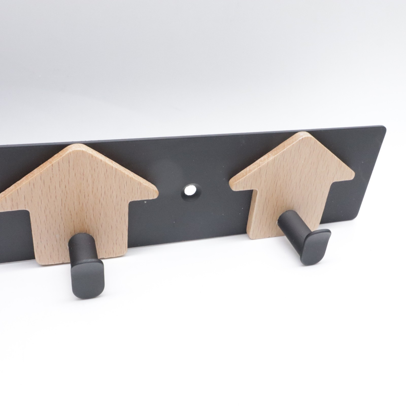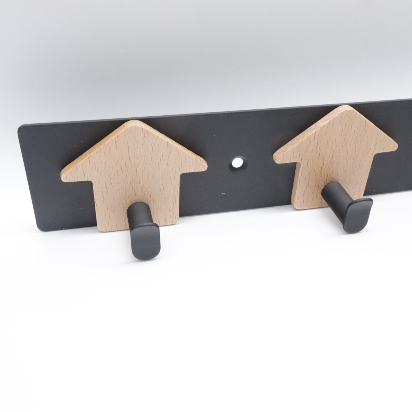 This is an industrial-style hat rack made of heavy-duty black metal with a wooden cabin design. The rack measures 14 inches in length and 2 inches in width, providing a sturdy and stylish solution for organizing hats and coats. The metallic finish adds to the industrial look of the rack, making it a functional and decorative piece for any entryway or hallway.