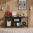 Industrial TV Stand for up to 45 inch TV, Heavy-Duty Metal Frame Entertainment Center, Compact Media Console with Adjustable Shelf & Cable Management for Small Spaces, Living Room, Black Compact & Durable Industrial Design: Size: 41"L "W x "H. Perfectly scaled for small spaces, this 41-inch console fits TVs up to 45 inches. Built with waterproof, scratch-resistant materials and a robust metal frame, it delivers industrial style and long-lasting durability in a space-saving footprint Smart & Flexible Storage: Maximizes your space with efficient open shelving. The adjustable middle shelf can be customized to fit media players, game consoles, or books, ensuring every inch works for your needs Stable on Any Surface: Engineered for reliable support despite its compact size. Adjustable plastic feet provide perfect stability and prevent wobbles on uneven floors or carpets. Engineered to hold up to 110 lbs on the top, securely supports most large-screen TVs Integrated Cable Management: Features a discreet cable management system with pre-drilled holes to easily route and hide wires. Keeps your small space neat, organized, and free from tripping hazards Easy Assembly: Get set up in minutes. All hardware and a clear instruction manual are included for a straightforward assembly experience. 24/7 customer support available for any questions .