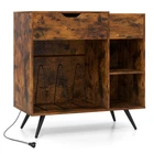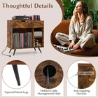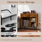 Color: Rustic Brown Material: Engineered Wood, MDF, Metal Overall Dimensions: 31.5" x 16" x 31"(L x W x H) Inner Size of Drawer: 18" x 11.5" x 3.5" (L x W x H) Dimensions of Open Cubby: 20" x 15" x 17.5"(L x W x H) Dimensions of Each Shelf: 10" x 15" x 8.5" (L x W x H) Raised Height from Ground: 6" 2 AC Outlets: 125V/12A 1 USB Port & 1 Type-C: 5V, 2.1A Power Cord Length: 5 ft Net Weight: 42 lbs Max. Weight Capacity: 255 lbs Package Includes: 1 x Record Player Stand 1 x User Guide ▌ PRODUCT DETAILS: Description: Say goodbye to messy and hard-to-find records! Our turntable stand provides a large top for your record player, complemented by a spacious drawer and 4 open cubes to neatly arrange your vinyls and albums. Organize your music collection to your likings with the removable divider, and power your devices using the built-in AC, USB and Type-C outlets. The stand's tapered metal legs, anti-slip pads, and anti-toppling devices keep your records and flooring safe and sound. With its sleek industrial design, it enhances the modern aesthetic of your space and can double as an elegant bedside or sofa-side table. Choose our record player stand for a perfect setup, ideal for both music lovers and home organizers! Features: Built-in AC outlets, USB & Type-C ports for charging your devices Ample storage space for your books, magazines and music collections Wide tabletop to hold your turn table, speakers or displays 4 open cubes and 1 deep drawer for accessibility and privacy Customizable lower cabinet with 2 removable dividers Hidden cable management hole to conceal messy wire from sight Tapered metal legs with anti-slip pads to keep the stand stable 2 anti-toppling devices to hold it in place without tipping over Enhance your music corner with its rustic charm Versatile choice for music studios, living rooms and bedrooms Assembly needed Specifications: Color: Rustic Brown Material: Engineered Wood, MDF, Metal Overall Dimensions: 31.5" x 16" x 31"(L x W x H) Inner Size of Drawer: 18" x 11.5" x 3.5" (L x W x H) Dimensions of Open Cubby: 20" x 15" x 17.5"(L x W x H) Dimensions of Each Shelf: 10" x 15" x 8.5" (L x W x H) Raised Height from Ground: 6" 2 AC Outlets: 125V/12A 1 USB Port & 1 Type-C: 5V, 2.1A Power Cord Length: 5 ft Net Weight: 42 lbs Max. Weight Capacity: 255 lbs Package Includes: 1 x Record Player Stand 1 x User Guide ▌ Contact & Returns: If you have questions about purchases from us, please feel free to contact us through eBay's Message Center. Items should be returned in their original product packaging and all accessories in the original shipment must be included if you would return the item. ▌ Shippment: • Free Standard Shipping on all items. • All orders are shipped out via UPS, Fedex, USPS or LTL. • Transit time is 2-7 business days varying on customer’s location to fulfillment center. • Tracking numbers will be automatically updated once order is shipped. • We only ship to the Lower 48 States, no current shipping to Hawaii, Alaska, Puerto Rico, nor Guam. • We do not ship to FPO, APO or PO Boxes.