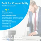 Package Include : As you selected Compatible for Printers Listed Below: for Epson Expression Home XP-424 XP-420 XP-320 for Epson WorkForce WF-2650 WF-2630 WF-2750 WF-2760 WF-2660 Page Yield: Up to 500 pages per Black ink, 450 pages per Color ink Installation guides: Step 1: Upside down the cartridge and peel off the yellow seal tape . Step 2: Insert the cartridge into corresponding slot until it click into the place. Note: Do Not Touch The Chip. Tips: 1. Please wear gloves to prevent from getting ink on your hand. 2. Please clean the printing head before printing. 3. These are NON-genuine ink cartridges. Your printer may display an ink alert message such as “Non-Original cartridges”. Simply press “Yes”, “Continue”, “Accept” or “OK” to dismiss the prompt.