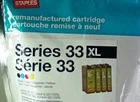 Ink Cartridges. 33XL. Series 33. Four Pack. Remanufactured by Staples