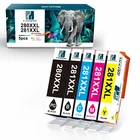 Package Include: We will ship the combo you choose. We have different combinations to be selected. Compatible for Printers Listed Below: Canon Pixma TR7520, Pixma TR8520, Pixma TS6120, Pixma TS8120, Pixma TS9120, Pixma TS8220, Pixma TS9520, Pixma TS9521C, Pixma TS702, TS9100, TR8500, TR7500. Page Yield: Up to 600 pages per 280 XXL Large Black / 6,360 pages per 281 XXL Small Black / 830 pages per 281 XXL Cyan, Magenta and Yellow (at 5% coverage, XXL for extra high page yiled than standard) Easy Installation: Step-1 Hold the cartridge upside down and remove the orange protective plastic cap carefully Step-2 Insert into corresponding slot in your printer Features: ① Replacement pgi-280 xxl cli-281 xxl ink cartridges are manufactured in an ISO9001 & ISO14001 certified facility. ② Advanced Chips calculate the ink level accuratelly and 100% Compatible with Original printer. ③ Special formulated ink shows vivid & sharp printouts. Tips: 1. Please confirm the cartridge colors for your printer. This is 5 color cartridges without photo blue. 2. Pls replace ink cartridges ONLY when the ink cartridges marked with 'X' or "!" above their ink level. 3. After the cartridges installed, if blending color happens, just clean the printer head and nozzle, and then it will work fine.