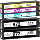 Replacement Ink Cartridges for HP 972A BCMY for PageWide Pro MFP 477dw 577dw REPLACES: HP 972A SHELF LIFE: 18-24 Months CONDITION: New PACKAGE CONTENTS: Quantity of each varies based on combo pack chosen PAGE YIELDS & COMPATIBLE PRINTERS All printer models may not be listed. HP 972A (F6T80AN ) BLACK - 3500 pages HP 972A ( L0R86AN ) CYAN - 3000 pages HP 972A ( L0R89AN ) MAGENTA - 3000 pages HP 972A ( L0R92AN ) YELLOW - 3000 pages HP PAGEWIDE PRO SERIES: Pagewide Pro 352dw Pagewide Pro 377dw Pagewide Pro 452dn / 452dw Pagewide Pro 477dn / 477dw Pagewide Pro 552dw Pagewide Pro 577dw / 577dw MFP / 577z SHIPPING INFO FREE STANDARD SHIPPING is offered on all orders within the contiguous 48 US States. Orders shipping to Alaska, Hawaii, and US Protectorates are excluded. We have a 1 day business handling time. Expedited shipping services are available for an additional charge. We will ship to the address provided at time of checkout. We cannot guarantee the address change requests will be granted before the order is shipped out. RETURN INFO We accept all returns for refund up to 60 days or replacement/exchange for up to one (1) year. Please contact us through eBay messages before opening a request for a chance to troubleshoot or rectify the issue. To ensure all requests (for replacements or refund) are processed in timely manner, PLEASE DO NOT send anything to us without an RMA# (Return Merchandise Authorization #). PAYMENT INFO Please see accepted payment options above in the "Payments" section. Out-of-state sales are automatically calculated and collected by eBay. For all orders shipping within California, we charge 9.5% sales tax, per Los Angeles County's current rate, effective July 1, 2020. Copyright Dillonno1©, All rights reserved. Brother, Dell, HP, Lexmark, Canon, Epson, and other manufacturer brand names and logos are registered trademarks of their respective owners. Any and all brand name designations or references are made solely for purposes of demonstrating compatibility. Powered by SixBit's eCommerce Solution