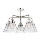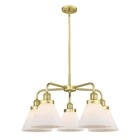 This stunning chandelier adds a perfect industrial-chic touch to any space! The satin gold finish and cone shades give it a sleek, modern look while the sturdy metal construction ensures durability. It provides great lighting with flexibility for different bulb types, making it both stylish and functional. The 26" width makes it a statement piece without overwhelming the room. Love how it elevates my kitchen’s vibe—highly recommend!