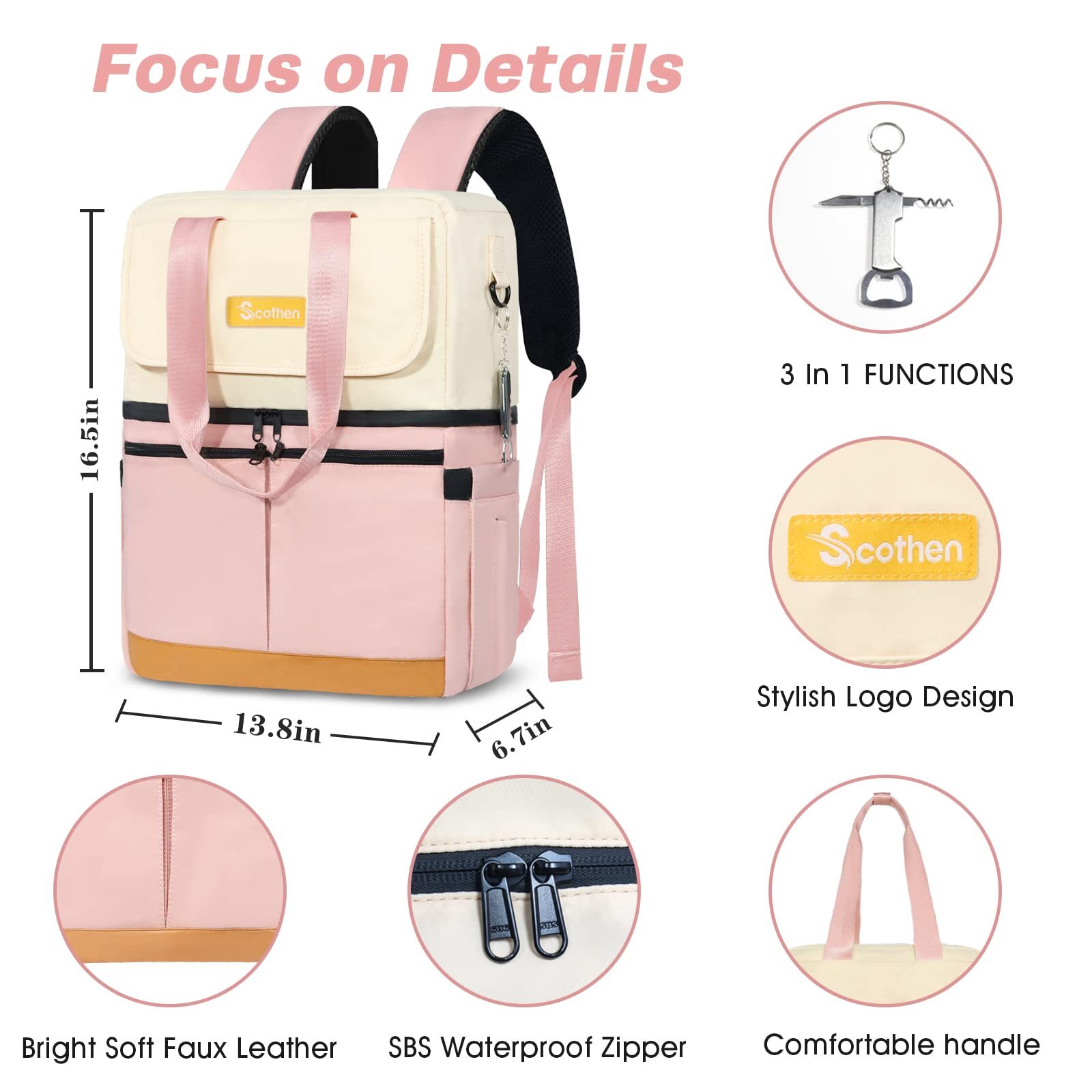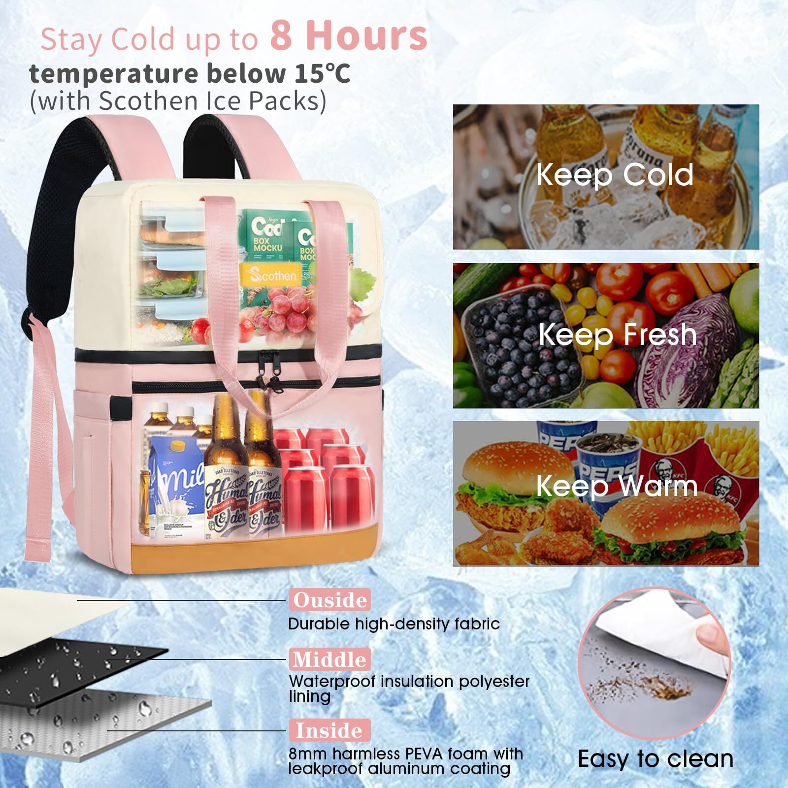 Exciting Offers Await! Check out our exclusive collection at unbeatable prices. Backpack Cooler with Double Decker & 12 Ice Packs- Keeps 36 Cans Cold for Up to 8 Hours- Waterproof & Leak Proof Insulated Cooler Backpack- Stylish Cooler Bookbag for Women Travel Work Beach Product Overview Main Features Scratch Resistant Ripstop/Nylon Surface + Waterproof PU Coating + Waterproof Zipper+ 8mm High-Density Foam Insulation + Leakproof Hot-pressing PEVA Liner ❄️Keeps Drinks Cool for Up to 8 Hours: Comes with 12 self-absorbent ice packs, ice chest backpack keeps your beverages and food at the perfect temperature throughout the day. The inside is made of non-toxic & harmless PEVA material and a thick layer of waterproof insulated foam, which will not spoil the taste of food. What's more, our ice packs are reusable that means you can not only save money, but also keep the contents inside fresh for 8 hours every time. 🍱Hot & Cold Separation Design: The unique double-layer structure of small cooler backpack is designed for women. The bottom compartment can house ice packs, suitable for cold and fresh contents, the upper compartment perfect for warm dry goods and lunches.We recommend storing hot and cold foods and drinks separately for better results. It is a must-have beach cooler backpack for women! It can also be used as a breast pump backpack to store breast milk anytime at work 🍼 ! 💧Leak Proof & Waterproof: Our waterproof cooler tote works effectively at keeping liquid contents at ideal temperature without leaking.The Eva liner combined with SBS waterproof zipper+ waterproof nylon+ PU coating, which means excellent waterproof effect, you can confidently take it to the beach.The upper layer design for hot, leak-proof 80%, the lower layer design for cold, leak-proof 1OO%.We recommend put the ice cubes and cold drinks on the lower layer to avoid getting your clothes wet. 🏖️Large Capacity & Multiple Pockets: Measures 16.5 “x 13.8 “x *6.7 “, holds 36 cans of cola.The soft cooler comes with 2 front pockets,1 top pocket, 2 side pockets and 1 anti-theft pocket to hold your phone, snacks and cutlery. 2 insulated compartments is big enough to pack beers, tall beverages, drinks, meals, vegetable, etc. Which is perfect for those romantic outings. Plus, we included a 3 in 1 function bottle opener that can open wine and beer, the perfect gift for your drinking buddies! 👜Stylish Appearance and Ideal Gift: Our Convertible portable cooler can use it as a chic tote, a hands-free backpack, making it super versatile! Arrive in style—back trolley sleeve for easily sliding over your luggage/suitcase handles, dual padded shoulder straps provide optimum comfort. With this stylish travel cooler backpack, you will get a lot of compliments. Moreover, It's a great gift idea for women, perfect for lunch, picnic, travel, hiking, camping, biking, park and Disney. ❤️After-Sale Service: The ice pack and bottle opener are stored separately in the two front pockets of the cooler bag.The insulated material will be accompanied by a slight smell, but it is harmless, for a better experience, please ventilate for two days before use. If any accessories are missing, please us, we provide a 30-day money-back guarantee. Payment Details ✔ Secure payments through eBay's system. ✔ We accept PayPal and all major credit cards. ✔ Payment must be completed immediately after purchase. ✔ For any payment issues, please contact our support team for assistance. Shipping Information ✔ Orders are shipped to the address provided at checkout. Please ensure it is correct. ✔ We process orders within 1 business day (excluding weekends and holidays). ✔ Delivery usually takes 3-5 business days. ✔ We use trusted carriers like UPS, FedEx, and USPS. ✔ Shipping is only available within the contiguous United States. No shipping to Alaska, Hawaii, Puerto Rico, or PO Boxes. ✔ Contact us if you experience any shipping delays. Return Policy ✔ We offer a 30-day return policy. ✔ If you are not satisfied with your purchase, you can return it within 30 days for a full refund. ✔ Contact us to get the return address before sending back any items. ✔ Items must be returned in their original condition and packaging.