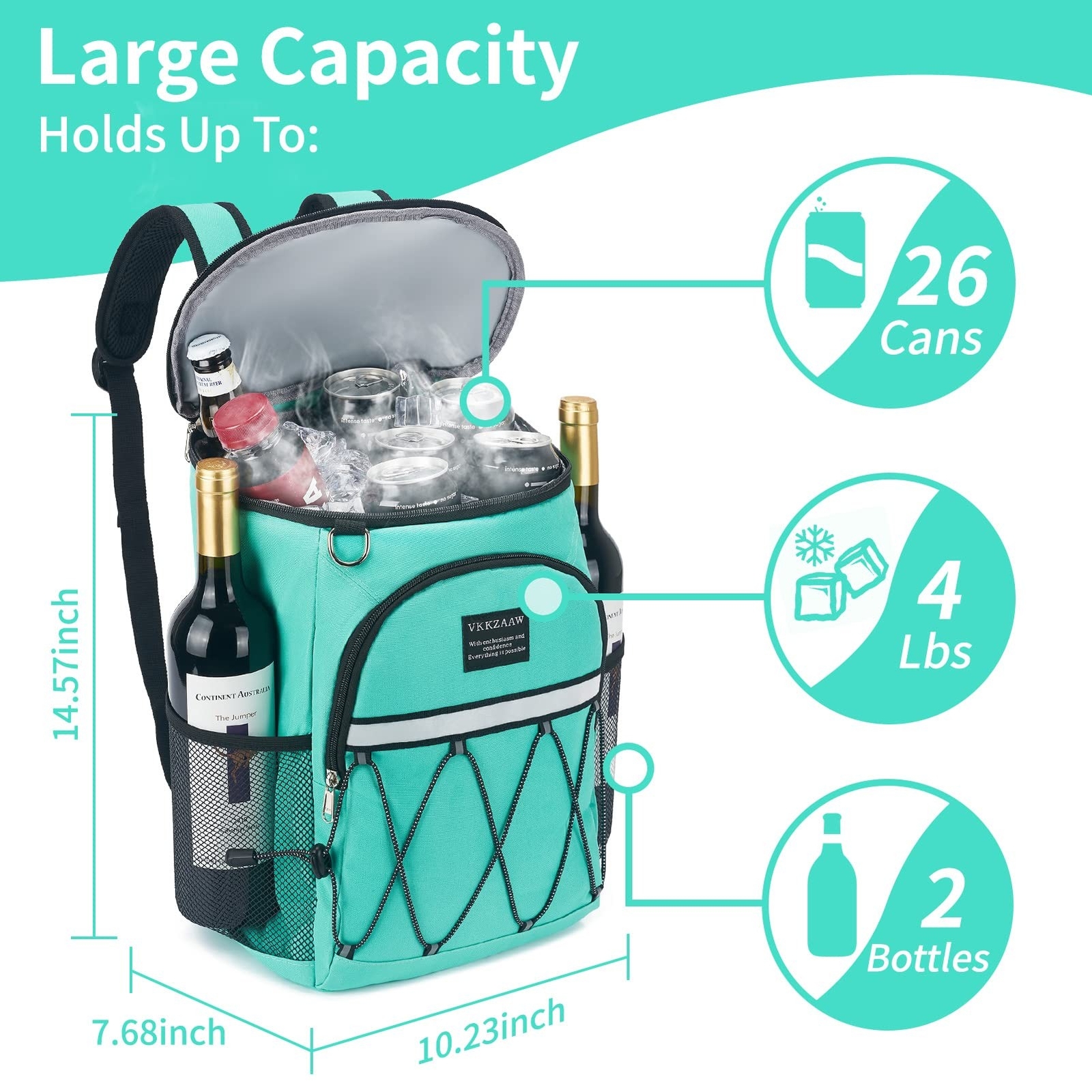 Backpack Cooler Backpack 26 Cans Insulated Leak Proof for Women Men Beach Camping Picnic Fishing Hiking Lunch Backpack Waterproof Cooler Product Information Features: - Waterproof Oxford Cloth - Imported - Insulation and Anti-leakage waterproof backpack: the inner thickened and anti-leakage EVA liner works together to prevent leakage and keep food cold for 16 hours with ice packs,keep food warm with this backpack. - Lightweight and Cute Cooler Lunch Backpack: The cooler backpack weighs only 1.2 pounds, The deep main compartment can hold 26 cans, enough for meals, beer, snacks and even large drinks. The perfect insulated cool backpack for day trips, camping, hiking, picnics, and beaches. - Durable & Comfortable Structure: Double adjustable padded shoulder straps and thick back pads provide maximum comfort and support. Additional top padded handle with beer opener on the strap for easy carrying and clean. - Sturdy and Durable Materials: Made of high-quality Oxford cloth, wear-resistant; high-quality zipper, sturdy and easy to pull. - Multiple Pockets: 1 main spacious cold storage compartment, 2 side mesh pockets, 1 front zippered pocket for tableware storage. Enough to store food/beverage/fruit/beer, mobile phone, keys, tissues, bottled water, etc. Product Details: - Brand: VKKZAAW - Color: Teal - Material: Waterproof Oxford, High-density Waterproof Coating, 8mm EPE Foam Middle Layer, 420D Liner, Food-grade PEVA Material See more - Package Information: Bag - Capacity: 18 Liters - Item Dimensions LxWxH: 10 x 8 x 15 inches - Item Weight: 1.2 Pounds - Special Feature: 26 Cans Capacity, Portable, Wear-resistant, Lightweight, 3 Extra Pockets, Reflective Strip, Bottle Opener, Top Handle, Adjustable Strap, 16 Hours Retention, Leak Proof, Waterproof See more - Included Components: 1 front zippered pocket, 2 side mesh pockets, bottle opener, top handle, reflective strip, breathable back and straps See more - Recommended Uses For Product: Picnic, Lunch, Beach, Park, Fishing, Camping, Hiking - Brand: VKKZAAW - Color: Teal - Material: Waterproof Oxford, High-density Waterproof Coating, 8mm EPE Foam Middle Layer, 420D Liner, Food-grade PEVA Material - Package Information: Bag - Capacity: 18 Liters - Item Dimensions LxWxH: 10 x 8 x 15 inches - Item Weight: 1.2 Pounds - Special Feature: 26 Cans Capacity, Portable, Wear-resistant, Lightweight, 3 Extra Pockets, Reflective Strip, Bottle Opener, Top Handle, Adjustable Strap, 16 Hours Retention, Leak Proof, Waterproof - Included Components: 1 front zippered pocket, 2 side mesh pockets, bottle opener, top handle, reflective strip, breathable back and straps - Recommended Uses For Product: Picnic, Lunch, Beach, Park, Fishing, Camping, Hiking - Model Name: VKK-cooler-21-10 - Pattern: Solid Color - Product Dimensions: 7.7"D x 10.3"W x 14.6"H - Item Package Dimensions L x W x H: 15.43 x 12.28 x 2.83 inches - Package Weight: 0.57 Kilograms - Brand Name: VKKZAAW - Suggested Users: Unisex-Adult, Unisex-Youth - Number of Items: 1 - Manufacturer: VKKZAAW - Style: Sporty style - Outer Material: Ethylene Vinyl Acetate - Size: 10.23 x 7.68 x 14.57" - Sport Type: All Exercise & Fitness, Basketball, Cycling, Dance, Diving, Football, Running, Soccer, Swimming, Running, Walking - Date First Available: October 6, 2021 INTERNATIONAL ORDERS Our international orders are directly handled by eBay's Global Shipping Program. We are not able to make any changes to the customs forms. In addition, it is up to the buyer to make sure the item will work for their respective country especially for electronic devices. In some cases, a power converter/transformer might be required for electronic devices. Please ask all questions prior to placing the order. In addition, since eBay cannot provide a return label for international orders, it is up to the buyer to pay for return shipping for international orders regardless of reason.