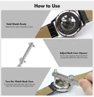 Heavy Duty 60mm Large Watch Back Case Cover Opener Adjustable Repair Wrench Watchmaker Tool for Professionals Specially Suitable for invicta larger diameter watches About this Item PROFESSIONAL WATCH CASE OPENER - Adjustable watch back cover opener can easily remove or screw down the waterproof watch back cover to replace the battery or repair the watch. It is a necessary tools for watchmakers and watch repairing workers WIDE RANGE of ADAPTATION - The jaw distance can be adjusted between 10.5mm and 60mm, it be used to open waterproof watches of different sizes. (NOTE : It be used to open and close most screw-in watch back cases, can not be used for watches that pry open the bottom cover directly) PERFECT DESIGN - Watch Case Opener Tool have a Perfectly Weighted Feel and HIGH QUALITY Durability. The strong Alloy Steel and Brass Plating is designed for tough use, so it is much sturdy and more durable than other similar products EASY to USE - No complicated operation, you just need to fix the watch on the repair bracket or hold firmly in the hand, then roll the adjusting wheel to set the bit spacing that matches the width of the case. After installing the watch case opener, try turning the watch back cover, The cover can be opened successfully LIFETIME GUARANTEE - If anything happens to your Watch Back Case Opener Tool, we will replace it no questions asked. No charge to you. Guaranteed. Buy Now with Peace Of Mind Description Specification: Material: 316L Stainless steel + Zinc Alloy Steel + Brass Plating Length: Approx. 18.5cm / 7.28inch Net Weight: Approx. 115g Maximum Watch Case Opening Diameter: 65mm NOTE: 1. Light shooting and different displays may cause the color of the item in the picture a little different from the real thing 2. Applicable to the Watch with grooves on the back cover
