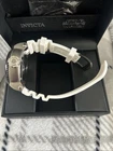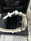 Introducing the Invicta Men's 27757 Watch, a modern and stylish timepiece inspired by the iconic Star Wars Stormtrooper design. This wristwatch features a white dial with black accents, including a unidirectional rotating bezel and a date display. The two-piece white rubber strap with a buckle closure adds to the watch's sleek look, while the stainless steel case with a snap caseback ensures durability and water resistance up to 300 meters. The Invicta Star Wars Stormtrooper watch is powered by a reliable quartz (battery) movement and is equipped with other features such as an analog display and a maximum wrist size of 8.1-8.25 inches. This watch is perfect for adult men who appreciate a dress style and want to make a statement with their accessory. With its unique design and quality craftsmanship, this Invicta watch is a must-have for any watch collector or fan of the Star Wars franchise.