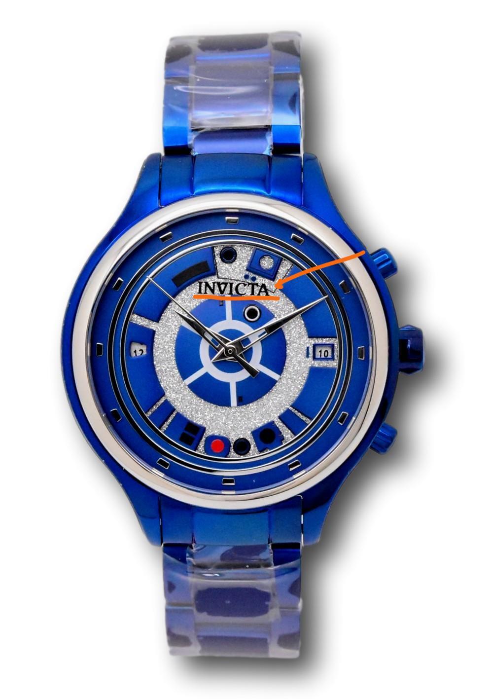 New - With Defects New and Unworn - Invicta logo appears slightly crooked - very minor imperfections on the watch hands visible upon close inspection - watch is otherwise NEW and 100% Functional Guaranteed Authentic - Includes Invicta Box and Warranty Card 100% Functional - This listing includes pictures of the actual watches for sale - Limited Edition out of 1977 Watch features Silver and Blue Glitter dial - an elegant and luxurious look. Japanese quartz movement, with two 24 hour subdials. The left subdial can be adjusted with the pushers, the right subdial mirrors the main time. Limited Edition Case size: 38 mm wide or about 41 mm wide including the crown Thickness: about 13 mm thick Weight : 3.8 ounces Items included: Invicta Box and Warranty Card Max wrist size: 7.2 Inches Case and Dial Case Size: 38mm Case Material: Stainless Steel Bezel Material: Stainless Steel Bezel Color: Steel Crown Type: Push Crystal Type: Flame Fusion Dial Material: Metal Movement Caliber: VD32 Function Type: Quartz Water Resistance Water Resistance: 100m Band Material: Stainless Steel Tone: Blue Length: 190mm Size: 16mm Top Selling Disney Super Hero Star Wars New in Stcok TechnoMarine Contact Us Invicta Star Wars R2-D2 Women's 38mm Dual Time Limited Glitter Watch 41392 New - With Defects New and Unworn - Invicta logo appears slightly crooked - very minor imperfections on the watch hands visible upon close inspection - watch is otherwise NEW and 100% Functional Guaranteed Authentic - Includes Invicta Box and Warranty Card 100% Functional - This listing includes pictures of the actual watches for sale - Limited Edition out of 1977 Watch features Silver and Blue Glitter dial - an elegant and luxurious look. Japanese quartz movement, with two 24 hour subdials. The left subdial can be adjusted with the pushers, the right subdial mirrors the main time. Limited Edition Case size: 38 mm wide or about 41 mm wide including the crown Thickness: about 13 mm thick Weight : 3.8 ounces Items included: Invicta Box and Warranty Card Max wrist size: 7.2 Inches Case and Dial Case Size: 38mm Case Material: Stainless Steel Bezel Material: Stainless Steel Bezel Color: Steel Crown Type: Push Crystal Type: Flame Fusion Dial Material: Metal Movement Caliber: VD32 Function Type: Quartz Water Resistance Water Resistance: 100m Band Material: Stainless Steel Tone: Blue Length: 190mm Size: 16mm This item includes a 100% Money-Back Guarantee! If you're not completely satisfied with your purchase, just send it back in the same condition within 60 days and we will refund the full purchase price of the item. We'll even cover the return shipping! (Only applies to USA orders). Please Note: We do not cover water damage for watches. We do not test or verify manufacturer's water resistance claims. Please use your watch in water at your own risk. To receive free return shipping: Next to this item in your ebay purchase history, click on "Return this item." Please choose "Changed-mind" as the reason for the return. This will allow you to print a pre-paid return shipping label. - Klawk Watches - We have been in business for over 8 years, with more than 25,000 customers from around the world. We specialize in Invicta watches and have many models that can't be found anywhere else. We have some of the lowest prices - and you won't find better customer service. We try to provide the best customer service possible. We hand-inspect each watch and test them to make sure they are completely functional before shipping them out. We also include a no-hassle 60-day warranty on all of our watches (this warranty only covers defects in the watch movement). Our 60-day warranty does not cover any damage from water or moisture. Neither Klawkwatches nor any manufacturer covers water damage under warranty. Use your watch in water at your own risk. We're happy to help! If you have any questions, Please let us know and we will get back to you within 24 hours. Shipping Returns Shipping Shipping Returns Shipping Orders are shipped daily. We generally ship items within 24 hours of receiving payment. We offer standard, Prioirty, and overnight shipping services. You can upgrade your shipping speed at checkout for the difference in shipping costs. Unless a shipping upgrade is purchased, items will generally ship as a First Class Package, the normal arrival time is 3-5 business days starting the day after the item is shipped. We do all of our international shipping through the eBay global shipping program. We ship the item to the eBay global shipping center and they will ship the item to you. eBay determines the international shipping costs and import fees for the item based on the item weight and your location. International shipments can take between 2-4 weeks to arrive depending on your location. Shipping Returns Returns Shipping Returns Returns If you're not completely satisfied with your purchase, you are welcome to return it within 60 days for a full refund. We will generally cover the return shipping costs if you are not satisfied with your purchase. Next to the item in your purchase history, you can click on "More Options" and "Return this item". This will allow you to print a pre-paid return shipping label. For international orders and returns, please contact us to make return arrangements.