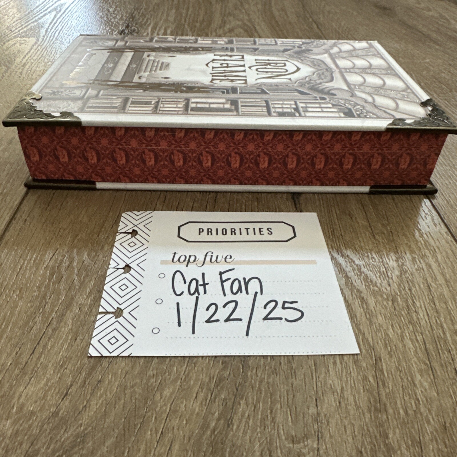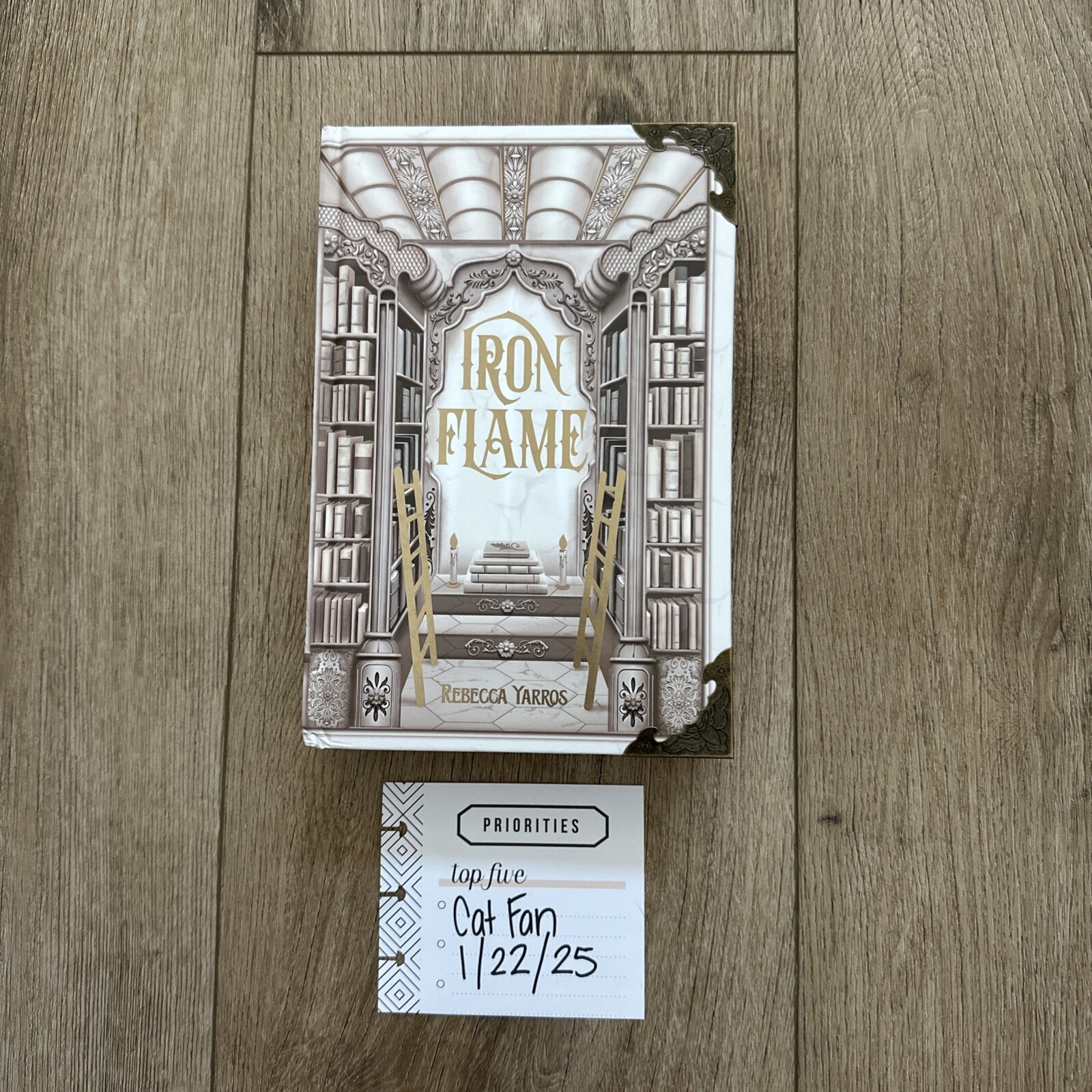 Book 2 of the Empyrean Series, “Iron Flame” by bestseller Rebecca Yarros. Detailed red sprayed edges. Intricate brass corner protectors. Gold foil front and back cover. Comes with 4 gorgeous illustration overlays. Unread but opened to insert overlays. This set is sold out.