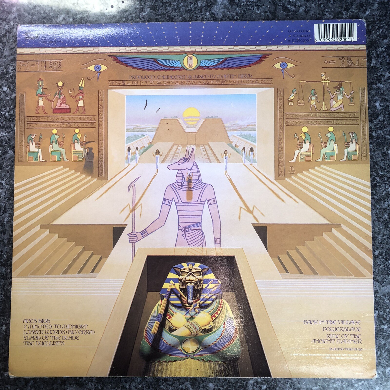 Track List A1 Aces High Written-By – Harris * 4:31 A2 2 Minutes To Midnight Written-By – Smith * , Dickinson * 6:04 A3 Losfer Words (Big 'Orra) Written-By – Harris * 4:15 A4 Flash Of The Blade Written-By – Dickinson * 4:05 A5 The Duellists Written-By – Harris * 6:18 B1 Back In The Village Written-By – Smith * , Dickinson * 5:02 B2 Powerslave Written-By – Dickinson * 7:12 B3 Rime Of The Ancient Mariner Sleeve and inner all excellent condition light shelf wear. Sent in a clear resealable cover, and new poly lined inner added. Labels clean excellent condition. Vinyl is also clean few light marks excellent condition superb audio a nice copy. Please see images as they form an important part or the item description. Pro cleaned. We combine postage on all multiple orders to reduce shipping costs to all our customers outside of the UK. Words By [Poem] – Samuel Taylor Coleridge Written-By – Harris * 13:45