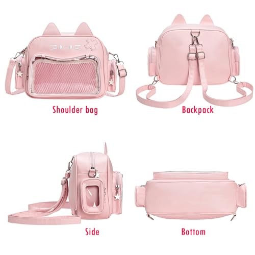 🎀 ITA BAG MATERIAL: Crafted from premium PU leather and PVC, this ita handbag boasts durable quality you can rely on. All zippers glide smoothly and work flawlessly, paired with excellent craftsmanship for long-lasting use.🎀 ITA BAG DIMENSIONS: The stylish backpack dimensions is 12"(L)x4.7"(W) x 7.8"(H) . There are planty space inside. It can easily fit a phone, Water bottle, ect. And the open pocket can hold keys or cards.🎀 STRUCTURE: Features a clear front window—perfect for showcasing your pi