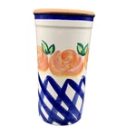 Italy Hand Painted Terracotta Ceramic Wine Cooler Chiller With Lattice & Roses This beautiful wine chiller/ cooler is a must-have for any wine lover. The lively colors and rustic hand-painted roses and lattice design on the terracotta chiller make it both fun and functional. Great for summer! The cooler/chiller is in excellent used condition. Finish is shiny and bright. Colors are vibrant. No chips or cracks. See pictures for details. 9 1/4" H x 4 7/8" Diameter