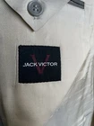 The Jack Victor Men's 44R Blazer Sport Coat is a stylish and versatile option for casual occasions. Made from a blend of wool, this two-button sport coat features a solid beige color and a classic notch lapel design. With a regular fit and a double-vented back, this blazer is both comfortable and sophisticated, making it a timeless addition to any man's wardrobe. Perfect for layering in all seasons, this Jack Victor blazer combines a touch of USA sports-themed style with quality craftsmanship and attention to detail.