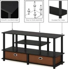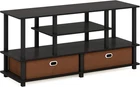 JAYA TV Stand for up to 50-Inch TV, 55 Inch Manufactured from Wood SIMPLE STYLISH DESIGN: This TV stand has simple stylish design yet functional and suitable for any living room, bedroom, or entertainment area. DUAL FABRIC STORAGE BINS: This entertainment center includes two removable non-woven bins to tuck away remotes, controllers, and accessories while keeping shelves neat and clutter-free. WEIGHT CAPACITY: The large top panel of this Tv console holds up to 55-Inch flat screen TV. STURDY BUILT: Crafted from high-quality, durable composite wood with rounded corner to prevent injuries and plastic tubes.. Built with FSC-certified wood, it unites sustainable materials and refined craftsmanship to deliver long-term durability and reliable use PRODUCT DIMENSION: x x Inches. JAYA Large TV Stand for up to 55-Inch TV with Storage Bin is a perfect fits into your modern simple lifestyle. It features the large top panel which holds up to 55-Inch Flat Panel TV. There are open display shelves to hold your entertainment equipment and two compartments with doors for your loose stuff such as CDs, DVDs and games. It is easy to assemble, lightweight and space saving. The manufacturing process complies with the green rules of production. There is no foul smell, durable and the material is the most stable amongst the medium density composite woods. The PVC tubes are made from recycled plastic and is tested for its durability. A simple attitude towards lifestyle is reflected directly on the design of Furniture, creating a trend of simply nature. All the products are produced and assembled 100-percent in Malaysia with 95% - 100% recycled materials. Care instructions: wipe clean with clean damped cloth. Avoid using harsh chemicals. Pictures are for illustration purpose. All decor items are not included in this offer. .