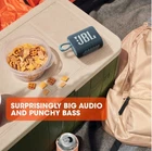 JBL Go 3 - Portable Waterproof Speaker - Black JBL Go 3 features bold styling and rich JBL Pro Sound. With its new eye-catching edgy design, colorful fabrics and expressive details this a must-have accessory for your next outing. Your tunes will lift you up with JBL Pro Sound, it’s IP67 waterproof and dustproof so you can keep listening rain or shine, and with its integrated loop, you can carry it anywhere. Go 3 comes in completely new shades and color combinations inspired by current street fashion. JBL Go 3 looks as vivid as it sounds. NEW IN BOX Original JBL Pro Sound JBL Pro Sound delivers surprisingly big audio and punchy bass from Go 3's ultra-compact size. Bold style and ultra-portable design JBL Go 3's ultra-portable design goes great with the latest styles, and its colorful fabrics and expressive details make it look as great as it sounds. IP67 waterproof and dustproof To the pool. To the park. JBL Go 3 is IP67 waterproof and dustproof, so you can bring your speaker anywhere. Wireless Bluetooth streaming Wirelessly stream music from your phone, tablet, or any other Bluetooth-enabled device. 5 hours of playtime Don't sweat the small stuff like charging your battery. Go 3 gives you up to 5 hours of playtime on a single charge. Vibrant color options JBL Go 3 features exclusive colorways inspired by the latest street fashion trends, introducing completely new shades and combinations.