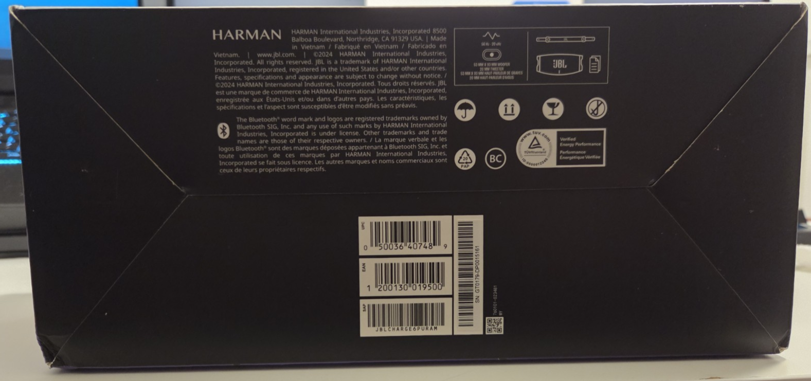 Elevate your audio experience with the JBL Charge 6 Waterproof Speaker in an eye-catching purple hue. Designed for the music-lover on-the-go, this portable speaker offers seamless Bluetooth connectivity for wireless streaming and doubles as a power bank, ensuring your devices stay charged wherever you are. The robust 30W RMS power delivers high-quality sound that's sure to impress. Crafted for convenience and durability, the JBL Charge 6 is shaped as a sphere, making it easy to carry and enjoy your favorite tunes by the pool, at the beach, or in your home. With its durable plastic construction and waterproof features, this speaker is built to withstand the elements while providing crystal-clear audio.