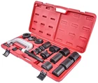 Ball Joint Service Kit20-Piece SetRemove/Install Ball Joints, Brake Pins, and U-JointsConstruction: SteelIncludes:(1) C-Press(1) Short Pin(7) Receiving Tubes(3) Adapters(8) Cups(1) Carry Case Parts Breakdown JEGS 555-80639 Ball Joint Service KitMake removing and installing press-fit ball joints, drum brake pins, and u-joints easy with the ball joint service kit from JEGS. This 20-piece kit has most of your needs covered. With a range of tubes, adapters, and cups, designed to fit with the included c-press, you can complete most jobs in the comfort of your garage.JEGS 555-80639 Ball Joint JEGS 80639 Ball Joint Service Kit 20-Piece Set Remove/Install Ball Joints Brake Ball Joint Service Kit 20-Piece Set Remove/Install Ball Joints, Brake Pins, and U-Joints Construction: Steel Includes: (1) C-Press (1) Short Pin (7) Receiving Tubes (3) Adapters (8) Cups (1) Carry Case Parts Breakdown JEGS 555-80639 Ball Joint Service Kit Make removing and installing press-fit ball joints, drum brake pins, and u-joints easy with the ball joint service kit from JEGS. This 20-piece kit has most of your needs covered. With a range of tubes, adapters, and cups, designed to fit with the included c-press, you can complete most jobs in the comfort of your garage. JEGS 555-80639 Ball Joint Service Kit Features: Red plastic blow-molded case securely holds each part in its specific location Designed for press-fit ball joints, will not work with the bolt-in type Fits the 1210 series and larger u-joints Measurements C-Press Opening dimensions: 6 1/8 in. L x 2 1/8 in. D Threaded rod: 9 1/8 in. L x 1.120 in. D Bolt head: 7/8 in. Through opening inside diameter: 1.260 in. Adapters Adapter 1 Side 1 dimensions: 1.720 in. D, 2.230 in. D, 2.720 in. D Side 2 dimension: 0.865 in. D (Fits C-press threaded rod) Inside diameter: 0.945 in. Adapter 2 Side 1 dimensions: 2.225 in. D, 2.720 in. D Side 2 dimension: 0.865 in. D (Fits C-press threaded rod) Inside diameter: 0.0515 in. Adapter 3 Outside diameter: 1.435 in. Stepped flange diameter: 1.220 in. (Fits C-press bottom opening) Inside diameter: 0.815 in. Cups Cup 1: Dimensions: 2 7/8 in. L x 2 in. OD Inside diameter: 1.800 in. Internal depth: 2 3/8 in. Bottom opening diameter: 0.235 in. Cup 2: Dimensions: 3 5/8 in. L x 2.500 in. OD Inside diameter: 2.165 in. Internal depth: 3 1/8 in. Stepped flange dimensions: 2.465 in. OD x 1 in. H Notch dimensions: 1.240 in. W x 5/8 in. H Bottom opening diameter: 0.435 in. Cup 3: Dimensions: 3 3/4 in. L x 1.995 in. OD Inside diameter: 1.780 in. Internal depth: 3 1/8 in. Bottom opening diameter: 0.230 in. Cup 4: Dimensions: 2 in. L x 2 1/2 in OD Inside diameter: 2 1/4 in. Internal depth: 1 1/2 in. Bottom opening diameter: 1.065 in. Cup 5: Dimensions: 3 3/8 in. L x 2.880 in. OD Inside diameter: 2.625 in. Internal depth: 2 7/8 in. Notch: 2 in. L x 2 3/4 in. W Bottom opening diameter: 1.065 in. Cup 6: Dimensions: 7/8 in. L x 2 1/4 in. OD Inside diameter: 1.815 in. Internal depth: 3/8 in. Bottom opening diameter: 0.890 in. Cup 7: Dimensions: 3/4 in. L x 2.240 in. OD Inside diameter: 1.890 in. Internal depth: 1/2 in. Bottom opening diameter: None Cup 8: Dimensions: 2 1/2 in. L x 2. 1/4 in OD Inside diameter: 2 in. Internal depth: 2 in. Stepped flange dimensions: 1/4 in. L x 2.165 in. OD Bottom opening diameter: 1 in. Pin Short Pin Length: 3 in. Head dimensions: 0.875 in. D x 0.255 in. T Long Pin (Installed in C-Press) Length: 3.700 in. Head Dimensions: 0.870 in. D x 0.920 in. T Tubes Tube 1: Dimensions: 1 3/4 in. L x 2 in. OD Inside diameter: 1 3/4 in. Tube 2: Dimensions: 1 3/4 in. L x 2 1/2 in. OD Inside diameter: 2 1/4 in. Tube 3: Dimensions: 2 1/4 in. L x 3 in. OD Inside diameter: 2 3/4 in. Tube 4: Dimensions: 2 1/4 in. L x 3 in. OD Inside diameter: 2 3/4 in. Scalloped dimensions: 1 1/8 in. L x 2 1/2 in. W Tube 5: Dimensions: 2 1/4 in. L x 2 3/4 in. OD Inside diameter: 2.430 in. Tube 6: Dimensions: 2 3/4 in. L x 2 1/2 in. OD Inside diameter: 2 1/4 in. Tube 7: Dimensions: 7/8 in. L x 2 1/2 in. OD Inside diameter: 2 1/4 in. Case Dimensions: 24 3/8 in. L x 13 in. W x 3 5/8 in. D From the iconic mail order catalog to a fully-stocked digital commerce experience, we have built a preferred destination for every gear-head, professional racer, weekend warrior and restoration nut who wants to take their vehicle to the next level. Around here, we don't just sell parts - we rely on them when driving our own cars around racetracks, dirt trails, and interstates across the country. Parts may be our business - but grease, fuel, exhaust, power, and speed are what we live for. Today, more than 350 people are employed by JEGS and the business draws in hundreds of thousands of customers each year. Yet, we maintain the culture stared by Jeg Coughlin from the very beginning: a family-run performance shop that preserves a trusted relationship with each and every customer. From the iconic mail order catalog to a fully-stocked digital commerce experience, we have built a preferred destination for every gear-head, professional racer, weekend warrior and restoration nut who wants to take their vehicle to the next level. Around here, we don't just sell parts - we rely on them when driving our own cars around racetracks, dirt trails, and interstates across the country. Parts may be our business - but grease, fuel, exhaust, power, and speed are what we live for. Today, more than 350 people are employed by JEGS and the business draws in hundreds of thousands of customers each year. Yet, we maintain the culture stared by Jeg Coughlin from the very beginning: a family-run performance shop that preserves a trusted relationship with each and every customer. From the iconic mail order catalog to a fully-stocked digital commerce experience, we have built a preferred destination for every gear-head, professional racer, weekend warrior and restoration nut who wants to take their vehicle to the next level. Around here, we don't just sell parts - we rely on them when driving our own cars arou