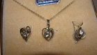 Purchased at auction POSSIBLE SCUFFS, NEEDS CLEANED NECKLACE, EARRING SET SCREW ON BACK ==== ALL LISTINGS WILL BE SOLD AS IS, IF YOU NEED MORE INFO ASK! Everyone has different opinions as to what is acceptable and what is not, or what is considered a miniature or color shade. Please ask questions! Always glad to combine purchases to save you $$ Please do not hold me responsible for Loss or damage caused by the Post Office. I wrap all Breakable items with Bubble Wrap and Pack in Styrofoam Peanuts. If you would like it packed a different way please ask...I am happy to pack which ever way you would like. Want your Item shipped to a different address, and Gift Wrapped?? No Problem!! Questions?? Please ask! Almost all of my listings were purchased at auction. Many will need cleaned, The less I have to do to the item the cheaper I can list it. I list them by what I see. I am not a expert on antique or vintage items will be glad to send extra pictures to your e-mail address I leave feedback on my sales after the buyer has received the item and by leaving feedback first. This lets me know that you have received the package and are happy with your purchase If for some reason there is a problem, Please allow me the opportunity to correct it if possible, before leaving neutral or negative feedback. I try to be fair with all my customers and hope to get the same courtesy from you. S&H charge shown is a ESTIMATE ONLY . I charge ACTUAL shipping for US and a extra $5.00 for International shipping to help offset the packaging materials, and fuel it takes to ship your item quickly, and safely. ( The increase in handling is due to the new E-bay fees on shipping.) If the cost that is shown is in your opinion too high, Please ask for a actual cost before bidding.