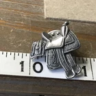 This exquisite JJ Jonet jewelry piece is a must-have for any horse lover. The detailed pewter horse saddle lapel hat pin is crafted with utmost precision and care. Made in the United States, the pin features a beautiful horse design that is sure to catch anyone's eye. The pin is perfect for adding a touch of elegance to your outfit or for collectors who appreciate unique and beautiful pieces. The animal class is a horse and the material is pewter. This item falls under the categories of Collectibles, Animals, Horses, Merch. & Memorabilia, and Jewelry & Pins. Add this stunning piece to your collection today!