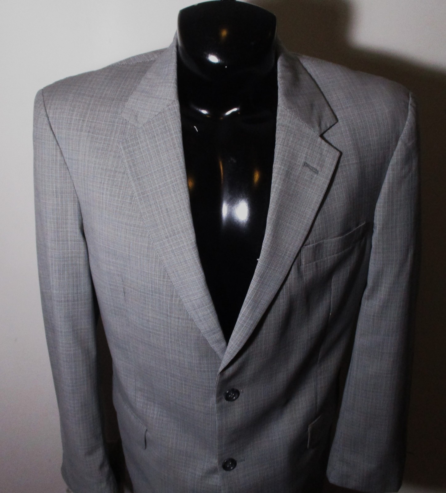 See my EBAY STORE at “SAMTPC53” to view 100’s more of my Men's JACKETS!!! Combine Shipping: (on multiple items you pay full price on heaviest item first and then HALF PRICE shipping on ALL other clothes items. Men's 100% Wool 2 Piece Pants & Blazer Suit . Brand: JOS. A. BANK. Description: men's 100% Wool JOS. A. BANK 2 piece blazer jacket and pants suit, lining, 2 buttons on front, 4 button cuffs, 3 front pockets, 2 inside pockets, vent on back, pants have pleated front and no cuffs, zipper, button and clasp on front, belt loops, 2 front pockets and 2 rear pockets, see pics. Color: Gray. Size: 43 Long, 35W, 34L (NOTE: pants have a 35" unfinished hem, please see measurements). Measurements: Jacket- 22.5" armpit to armpit, 20" back shoulders, 32" shoulder to hem, 17.5" insleeve, 26" outer sleeve, Pants- 35" waist, 34" inseam (Note: pants have a 35" unfinished hem), 12" rise. Material: 100% Wool . Condition: Very Good condition except NOTE: in removing cuffs front pants I made a small tear at bottom of left leg, see last pic, I patched tear from inside and a good seamstress may ceate a nice hem just the same, otherwise very nice suit.