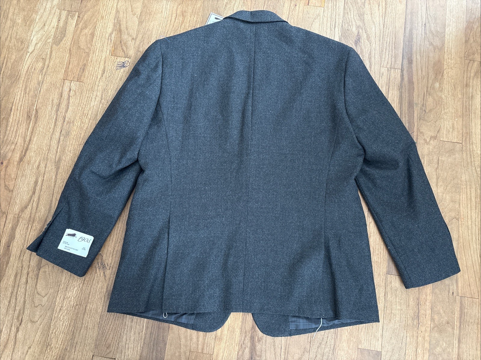 Vintage Nwt 1970s Double Breasted Suit 44r 37xunfinshed Polyester Peak Lapel