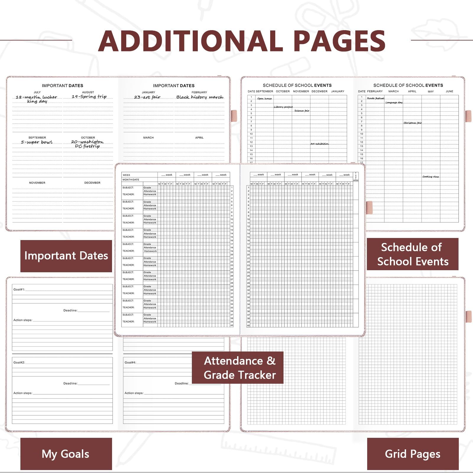 This planner is a game-changer for staying organized! The undated format makes it super flexible, and the spacious weekly layouts help track assignments effortlessly. Love the monthly calendars, goal-setting pages, and attendance tracker—perfect for keeping everything in one place. The rose gold cover adds a stylish touch, and the 8.5x11 size gives plenty of room to write. Ideal for students of all ages, it’s a must-have for acing the school year!