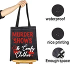 JXGZSO Murder Shows and Comfy Clothes Horror Tote Bag True Product Details Product Dimensions : 0.39 x 12.59 x 14.17 inches Department : Unisex We specialize in finding you the perfect tote bag for any occasion (or no occasion at all)!HOW TO LOVE YOUR bag: -Machine washable. -We recommend washing them inside out in cold water and then hang drying them. -Don't iron your bag, people.