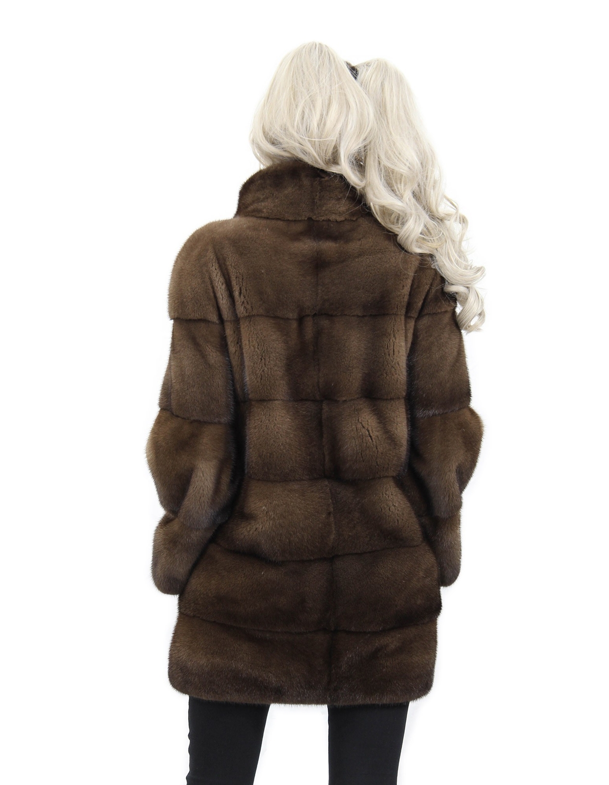 Jacket demi buff size 48 horizontal mink fur with Korean collar sleeve 3/4 INTERNATIONAL SHIPPING Shipping all over the world MADE IN ITALY PAYMENTS ACCEPTED We accept payments via PayPal, Credit Card, European bank transfer DESCRIPTION Mink jacket with whole skins in horizontal processing. Our mink furs are productions made in our workshops, therefore a unique and exclusive mink jacket. The possibility of producing our furs of the highest quality allows us to make proposals at different prices with various occasions at low prices always available. Furthermore, our laboratories and our collaborations guarantee a mink fur of undisputed quality 100% made in Italy. The quality of female mink fur used for this is a mink fur jacket with Kopenaghen furs branded skins. The mink fur jacket comes with external pockets, bell model with hook closure and Korean collar in mink fur, 3/4 sleeve in demi buff color 82 cm long. MEASURES Exact color - Demi Size - 48 Garment - Coat 75 cm Height cm (H) - 82cm 32.2 inches Pelvis cm (B) - 124cm 48.8 inches Breast Chest cm (C) - 116cm 45.6 inches Shoulder width cm (D) - 50cm 19.6 inches Outer Sleeve Length cm (E) - 58cm 22.8 inches Inner Sleeve Length cm (F) - 38cm 15 inches Waist cm (G) - 120cm 47.2 inches Neck Height cm (H) - Pistagna neck Bottom Width cm (I) - 128cm 50.4in Garment Size - 48 Color - Brown Item number - 563+ DEMI Padding - Brown CODE ARTICLE 00276818 Prestalia e-commerce solutions.