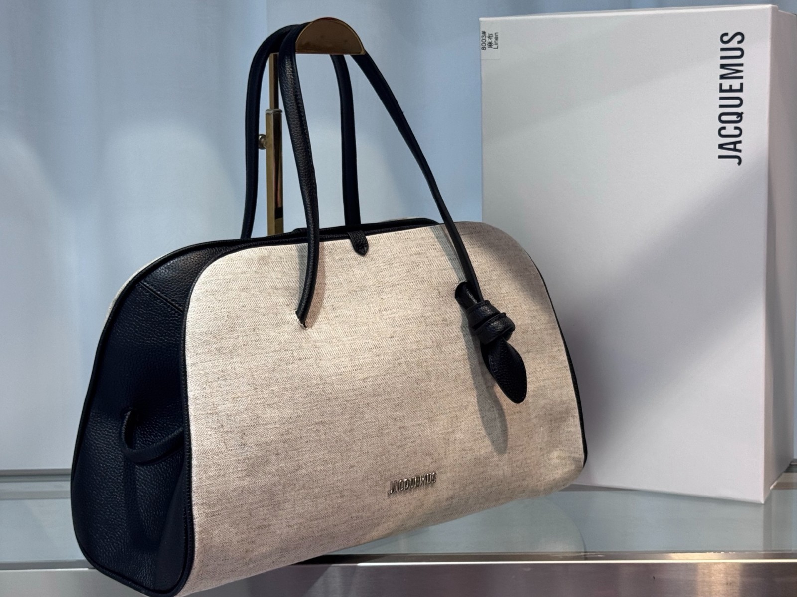 The Jacquemus The Turismo Canvas Leather Tote Bag Top Handle is a stylish designer handbag perfect for women. Made with a combination of canvas and leather, this tote features a unique multicolor exterior and a top handle for easy carrying. The Jacquemus The model adds a touch of luxury to the overall design, making it a chic and fashionable accessory for any outfit.