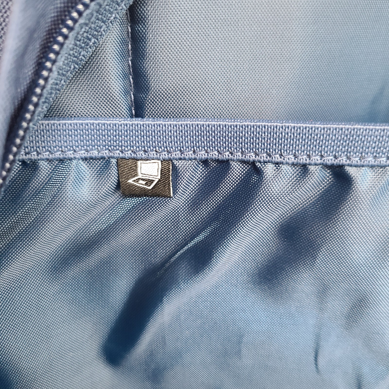 GREAT CONDITION JanSport AUSTIN backpack in Stella Blue with a floral pattern on the bottom. It is a large size backpack made of canvas with faux leather accents on the strap and zipper. The bag features inner and outer pockets, a laptop sleeve, adjustable straps, and the JanSport T71A model. The design is centered around a flower theme, making it a stylish choice for girls. With few flaws