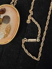 Stunning Japanese brooch featuring the most unique polka dot agate cabochon stone in a gold tone setting. This is a traditional Japanese Kimono Kitsuke Pendant/Brooch. Comes on a vintage gold plated chain marked "Germany". In like new condition! From smoke-free 🚭 dauschaund friendly home 🐾 Please message me with any questions!