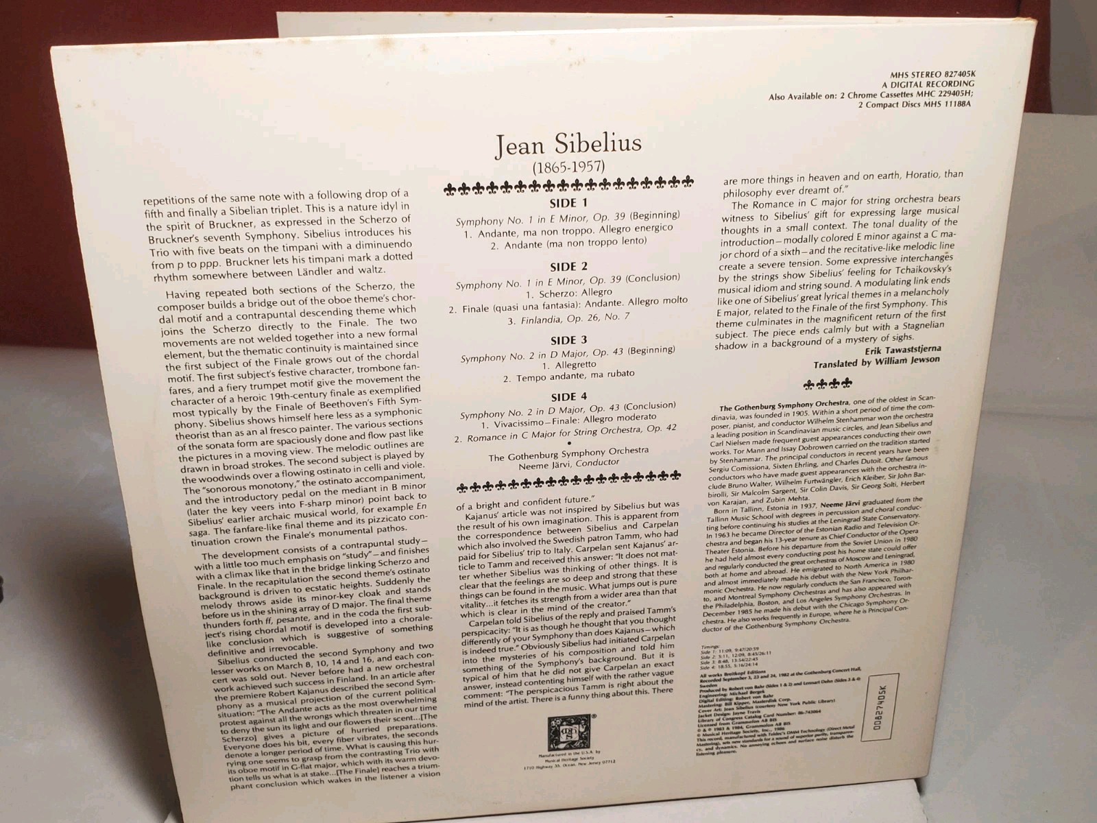 Jean Sibelius The Gothenburg Symphony Orchestra Symphonies Nos. 1 And 2 Romance. Condition is Used. Shipped with USPS Media Mail.