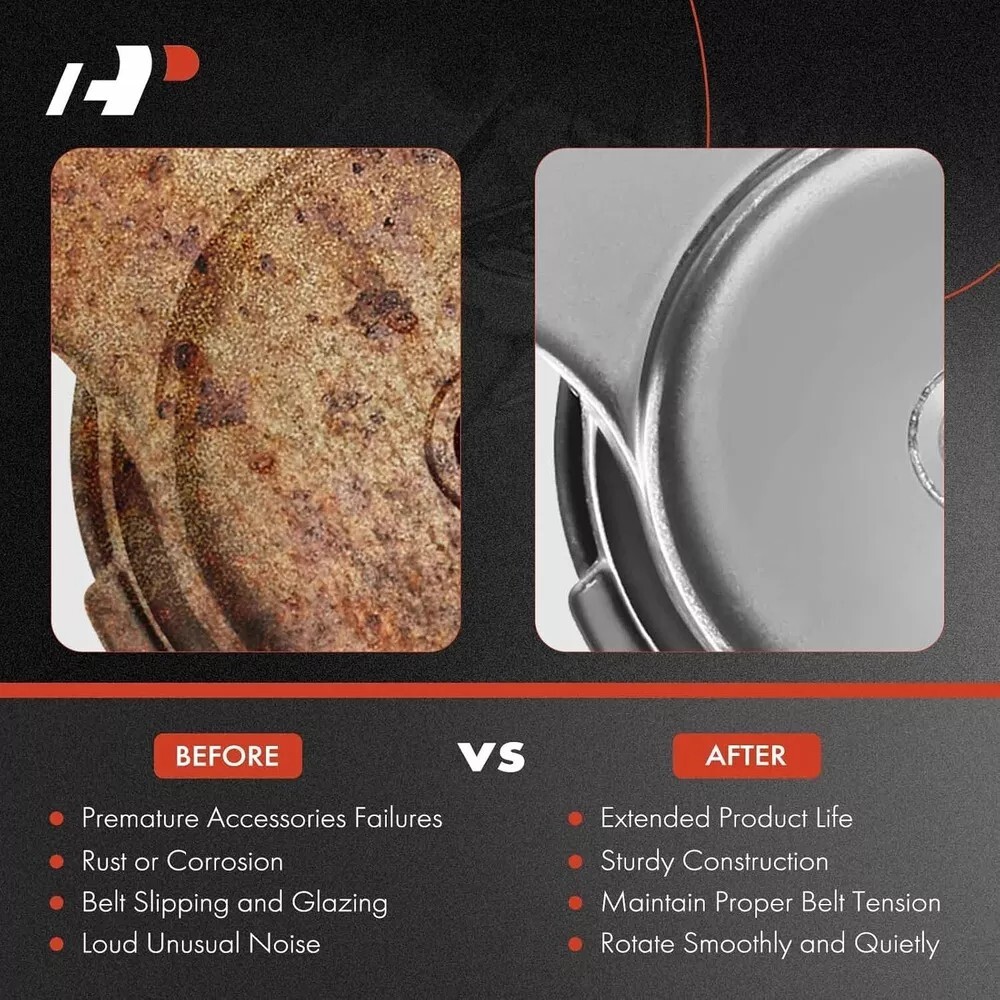 [Vehicle Fitment]: Compatible with Jeep JK Wrangler 2012-2018 V6 3.6L --- with Pulley [Reference Number]: 04627038AA, 4627038AA, 39415 [Specifications]: ①Pulley Quantity: 1; ②Belt Type: V-Ribbed; ③Outside Diameter: 65(mm); ④Bearing Bore Inside Diameter: 17(mm); ⑤Width: 24.5(mm) [OE Performance]: Perfect match with the original part for sturdy and durable construction. Maintain proper belt tension and rotate smoothly and quietly [Buy with Confidence]: A-Premium offers a one-year unlimited-mileage guarantee on our meticulously crafted belt tensioner assembly. We offer a wide variety of automotive accessory categories, ensuring that you can hit the road with peace of mind. Product Description Compatible with Jeep Models: 2012-2018 Wrangler JK V6 3.6L Reference Number: 04627038AA, 4627038AA, 39415 Advantages of A-Premium Belt Tensioner: 100% Performance Testing 100% New Premium Component Meet or Exceed OEM Specifications Specifications Contact Surface: Smooth/Backside Pulley Quantity: 2 Belt Type: V-Ribbed Number of Mounting Holes: 2 Outside Diameter (mm): 65 Width (mm): 24.5 Shipping We offer FREE shipping on all orders! We ship within Three business days of payment, usually sooner. We use a selection of shipping services such as UPS, FedEx, USPS etc. We only ship to the lower 48 states, no APO/FPO addresses or PO Boxes allowed. Local pickups and combined shipping options are not provided at this time. Return You can return a product for up to 30 days from the date you purchased it. Any product you return must be in the same condition you received it and in the original packaging. Please keep the receipt. Payment We accept payment by any of the following methods: PayPal Please pay as soon as possible after winning an auction, as that will allow us to post your item to you sooner! Feedback Customer satisfaction is very important to us. If you have any problem with your order, please contact us and we will do our best to make you satisfied. Contact Us If you have any queries, please contact us via ebay. We usually respond within 24 hours on weekdays. Please visit our eBay store to check out other items for sale! Thank you for shopping at our store. Disclaimer We are working with different suppliers in USA to deliver the item to your doorstep. If you have any issues regarding the item, Feel free to ask.