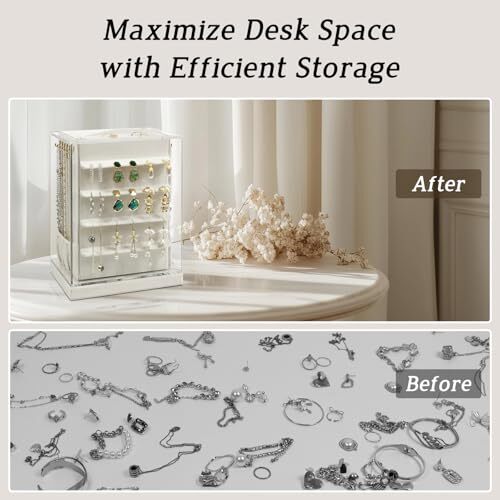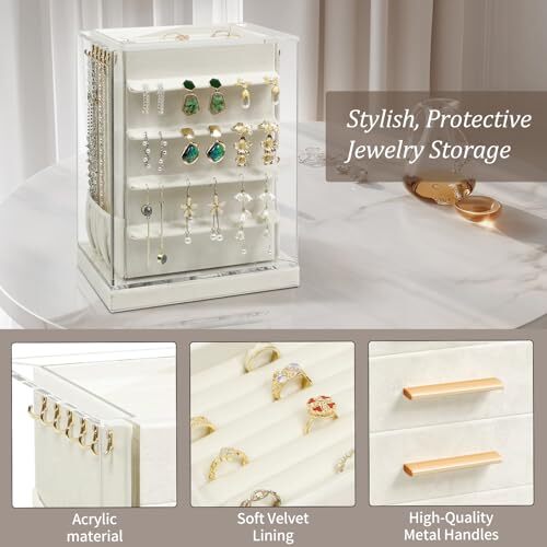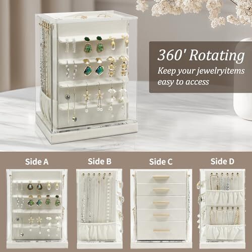 Return Policy Fast Delivery Trusted seller Jewelry Box 360° Rotating, Jewelry Organizer with 5 Drawers, Vertical Jewelry Storage, Christmas Gift, Large Jewelry Display Storage Case for Girls Women, Beige Product Description 360° Rotation Jewelry Boxes: Our jewelry box & organizer feature a unique 360° rotating design, which makes it easy for you to select your jewelry. The jewelry display box combines an open design with a closed one, offering both horizontal storage and vertical display capabilities for your jewelry. The display surface allows you to fully enjoy the viewing pleasure and easily access your jewelry, adding a touch of elegance and fun to your selection process. Large Jewelry Organizer: This jewelry holder organizer is designed with 5 drawers, 80 earring holes, 18 necklace hooks, offering ample storage for your sunglasses, glasses, and other jewelry accessories. It's the perfect jewelry box for women, catering to all your storage needs in one elegant solution. Premium Quality Material: This jewelry box a sturdy MDF construction for high-quality durability. While the soft velvet interior keeps your jewelry well protected. Additionally, all the sparkling metal handles are crafted with special attention to detail, combining practicality with aesthetics. Chic and Stylish: This jewelry box features elegant gold handles, a minimalist style, and a rotatable design, creating a unique and stylish look suitable for various settings, including vanities, dressing tables, and jewelry stores. Best Gift: This 360° rotating jewelry box is both elegant and thoughtful. The jewelry box makes a wonderful gift for Valentine's Day, birthdays, Mother's Day, Christmas, or weddings. With its elegant appearance, this jewelry storage box is perfect for all women and girls. It's an ideal gift for a mother, girlfriend, wife, daughter, or friend. Alternatively, you can treat yourself to this beautiful jewelry organizer as a well-deserved indulgence. Shipping Returns Payment Shipping Shipping is FREE to all addresses other than APO/PO boxes in the lower 48 states. All our stock ships from US-based warehouses. Shipped via USPS or UPS (depending on location and package weight) Unless stated otherwise, all orders will ship within 24-72 hours of your payment being processed. Check our feedback to see the great reviews of FAST shipping we offer. Returns Seller does not accept returns Payment We currently accept payment via eBay managed payments only. Once payment is cleared, we will dispatch your shipment within 1-3 business days. Please refer to the "Shipping" tab for more information regarding shipping speed to your destination.