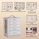30 Days Return Policy Fast Delivery Trusted seller Jewelry Box 360° Rotating, Jewelry Storage Case with 5 Drawers, Jewelry Organizer, Glass Window, Spacious, Vertical Jewelry Storage, Open Design, Great Gift Product Description Creative and Practical United - This jewelry box features vertical storage, an open design, and a 360° rotating function, allowing you to effortlessly display and quickly find your desired jewelry. Spacious Meets Versatile - This 6.3 x 8.7 x 11.2 inches jewelry box is designed with ring slots, necklace hooks, stud earring holes, 5 drawers for brooches and hair accessories, and 18 necklace hooks. It provides convenient storage for all jewelry. Stylish and Protective - This cloud white jewelry storage box features sparkling metal handles, a soft velvet lining, and durable MDF construction, ensuring optimal protection for your expanding jewelry collection. 18 Hooks for Long Necklaces - With 9 hooks on both sides, this jewelry box accommodates a variety of necklaces, especially longer ones, keeping them tangle-free and elegantly showcased. Perfect Gift Idea - Present your loved ones with the gift of this exceptional 360° rotating jewelry box on their birthday or anniversary. Or indulge yourself in this exquisite jewelry case because you truly deserve it! Shipping Returns Payment Shipping Shipping is FREE to all addresses other than APO/PO boxes in the lower 48 states. All our stock ships from US-based warehouses. Shipped via USPS or UPS (depending on location and package weight) Unless stated otherwise, all orders will ship within 24-72 hours of your payment being processed. Check our feedback to see the great reviews of FAST shipping we offer. Returns As our valued customer, we will do our best to make sure the product you receive arrives to you on time and as expected. If you are not satisfied with your purchase, please contact us within 30 days of receiving your order to process a return. Payment We currently accept payment via eBay managed payments only. Once payment is cleared, we will dispatch your shipment within 1-3 business days. Please refer to the "Shipping" tab for more information regarding shipping speed to your destination.