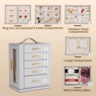 Jewelry Box 360° Rotating, Jewelry Storage Case with 5 Drawers, Jewelry Organizer, Glass Window, Spacious, Vertical Jewelry Storage, Open Design, Great Gift Product Details Color: GRAY Brand: FEIYAN MPN: 2603 UPC: Does not apply EAN: Does not apply Color: GRAY Brand: FEIYAN Material: Faux Leather Style: Modern Special Feature: Rotatable, Dustproof, Adjustable, Lock Recommended Uses For Product: Necklace, Bracelet, Ring, Watch, Earring, Bangle Product Dimensions: 6.3"D x 8.7"W x 11.2"H Target Audience: Women, Men, Boys, Girls Shape: Rectangular Occasion: Mother's Day, Christmas, Anniversary, Birthday, Valentine's Day Color: GRAY Brand: FEIYAN Material: Faux Leather Style: Modern Special Feature: Rotatable, Dustproof, Adjustable, Lock Recommended Uses For Product: Necklace, Bracelet, Ring, Watch, Earring, Bangle Product Dimensions: 6.3"D x 8.7"W x 11.2"H Target Audience: Women, Men, Boys, Girls Shape: Rectangular Occasion: Mother's Day, Christmas, Anniversary, Birthday, Valentine's Day Inner Material: Engineered Wood Closure Type: Key Lock Number of Drawers: 5 Jewelry Storage Type: Jewelry Box Manufacturer: FEIYAN Part Number: 2603 Item Weight: 7.26 pounds Country of Origin: China Item model number: 2603 Special Features: Rotatable, Dustproof, Adjustable, Lock Included Components: KEY Batteries Included?: No Batteries Required?: No Date First Available: April 19, 2024 Creative and Practical United - This jewelry box features vertical storage, an open design, and a 360 rotating function, allowing you to effortlessly display and quickly find your desired jewelry. Spacious Meets Versatile - This 6.3 x 8.7 x 11.2 inches jewelry box is designed with ring slots, necklace hooks, stud earring holes, 5 drawers for brooches and hair accessories, and 18 necklace hooks. It provides convenient storage for all jewelry. Stylish and Protective - This cloud white jewelry storage box features sparkling metal handles, a soft velvet lining, and durable MDF construction, ensuring optimal protection for your expanding jewelry collection. 18 Hooks for Long Necklaces - With 9 hooks on both sides, this jewelry box accommodates a variety of necklaces, especially longer ones, keeping them tangle-free and elegantly showcased. Perfect Gift Idea - Present your loved ones with the gift of this exceptional 360 rotating jewelry box on their birthday or anniversary. Or indulge yourself in this exquisite jewelry case because you truly deserve it!