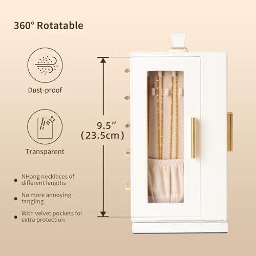 Jewelry Box 360° Rotating, Jewelry Storage Case with 5 Drawers, Jewelry WHITE