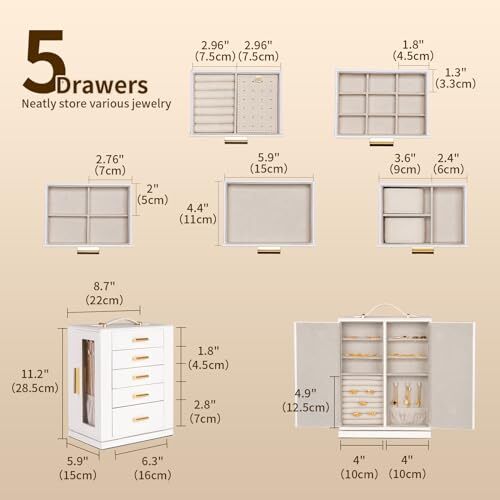 Batteries Included: No Included Components: KEY Material: Faux Leather Item model number: 2603 Occasion: Mother's Day, Christmas, Anniversary, Birthday, Valentine's Day gtin13: Does Not Apply Target Audience: Women, Men, Boys, Girls Closure Type: Key Lock Shape: Rectangular Item Length: 1 Country of Origin: China Color: WHITE UPC: Does Not Apply Item Weight: 6.91 pounds Number of Drawers: 5 Recommended Uses For Product: Necklace, Bracelet, Ring, Watch, Earring, Bangle Brand: Does Not Apply Part Number: 2603 Date First Available: April 19, 2024 Jewelry Storage Type: Jewelry Box Product Dimensions: 6.3"D x 8.7"W x 11.2"H Item Height: 1 Special Features: Rotatable, Dustproof, Adjustable, Lock Special Feature: Rotatable, Dustproof, Adjustable, Lock Batteries Required: No Inner Material: Engineered Wood Style: Modern MPN: Does Not Apply Type: Does Not Apply EAN: Does Not Apply Item Width: 1 Number of Compartments: 23 Manufacturer: Does Not Apply