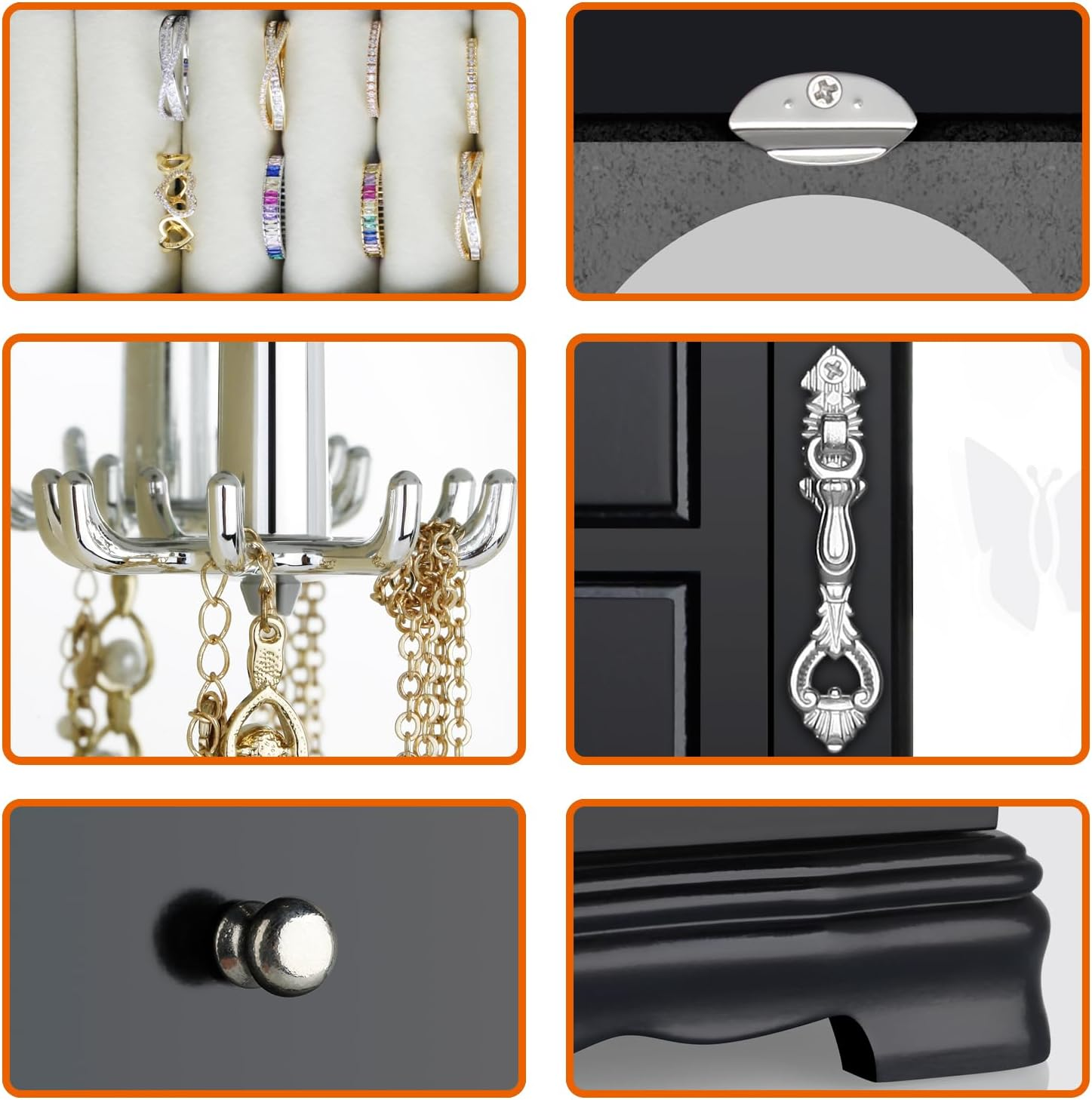 Store New Arrivals Add to Favorite View Feedback Contact Jewelry Box - Made of Solid Wood with 4 Drawers Organizer and Built-In Necklace Carousel and Large Mirror Black Description Style Fashion Black Number of Items 1 Country of Origin China Warranty Type Manufacturer Jewelry Storage Type Jewelry Case Batteries Required? No Number of Compartments 4 Special Feature Solid Wood Product Dimensions 9.5"D x 9.5"W x 10.75"H Material Wood Number of Drawers 4 Finish Type Painted Closure Type Not relevant for this product Item Weight 4.3 pounds Finish Painted Occasion Mother's Day, Christmas, New Year, Wedding, Birthday Special Features Solid Wood Target Audience Women, Men, Girls Mounting Type Freestanding Color Black Inner Material Velvet Shape Rectangular Recommended Uses For Product Necklace, Bracelet, Ring, Watch, Earring, Bangle 💝THE ROUND RICH HIGH-GRADE JEWELRY BOX:High-end natural hardwood structure, Anti-Tarnishing velvet lining, exquisite hardware decoration, harmonious color match, highlighting taste and nobility. Packaged in a beautiful GIFT BOX, a gift that women will not refuse! 💝External design:The top and bottom adopt the unique design style of wavy shape, 4-Drawers storage, each drawer has a silver handle. It looks beautiful and easy to open or close the drawer. 360 degree fully open butterfly pattern revolving glass door, adsorption of magnets when closed. The appearance is smooth, clean, comfortable and beautiful. 💝Internal Multifunctional Design:Removable square drawer on the left, large space storage (It can store necklaces, bracelets, earrings, earpins, hairpins, watches, rings and other jewellery accessories). The right side is equipped with stereo lenses, making it easier to choose jewelry to match your own clothes; The top is equipped with necklace carousel horse, which can hang a variety of jewelry; and a multi-layer velvet ring storage device. 💝Size:Jewellery box 9.5" x 4.75" x 10.75" (L*W*H); Drawer Internal Space 3.2" x 3.2"x 1.8" (L*W*H); Mirror Size: 3.5" x 9.25". 💝This elaborate jewelry box will protect all your accessories from scratches and offers a clean storage environment for jewelry. Product Description RR ROUND RICH DESIGN High-end and fashionable wooden jewelry boxes Cabinet three-dimensional design, Selected materials and fine workmanship create a fashionable look adding decor to your home. Wedding gifts, birthday gifts, this is your best choice! Environmental-Protection material, add elegance to this jewlery case, durable. Moisture and corrosion resistant. Velvet liner is moisture and corrosion resistant and offers a clean storage environment for jewelry. Exquisite and removable storage drawers. 8-claws Necklace hook capable of rolling and rotating freely. Classic and elegant bronze door handle Multi layer velvet ring slots ABOUT US We offer the best prices around on high quality products. Our E-store includes media such as books, movies, music and games while offering electronics, toys, sporting apparel, clothing, tools, general home, garden items and more. SHIPPING We are always working hard to ensure your package arrives as soon as possible. Please understand that some factors like weather, high postal traffic, and the performance of shipping companies are outside of our control. We offer free shipping to the lower 48 states and ship within 2 business days of payment, usually sooner. We do not accept P.O. Boxes. Please provide a physical address. For shipping outside of the continental USA, we only use eBay's Global Shipping Program.The item is shipped to KY and then sent to the rest of the world. International customers are responsible for all duties and taxes. Continue to check out in order to calculate costs for shipping the item to your country. Messages regarding eBay's Global Shipping Program MUST be directed at eBay EXCLUSIVELY. RETURNS We offer a 30-Day Return Policy on items which you are not completely satisfied with. You have the option for a full-refund or an exchange of the item. No returns are available on items shipped outside of the USA. PAYMENT We accept PayPal. CONTACT US This page content is yet to come Please ad us to your favorite seller and visit again later Thank You CUSTOMER SATISFACTION We try our very best to make sure every customer is completely satisfied. If there's a problem, message us! We're happy to help.
