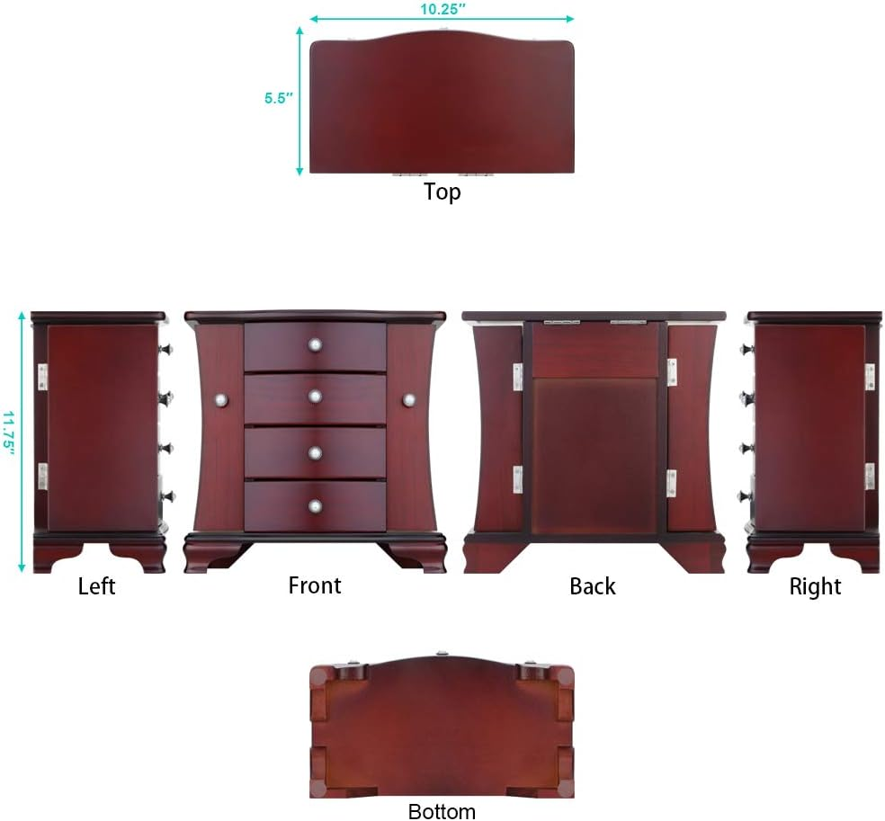 Store New Arrivals Add to Favorite View Feedback Contact Jewelry Box - Made of Solid Wood with Tower Style 3 Drawers Organizer and 2 Separated Open Doors on 2 Sides and Large Mirror Dark Brown Description Style Classic Number of Items 3 Jewelry Storage Type Jewelry Box Batteries Required? No Finish Painted Special Feature Removable Product Dimensions 5.5"D x 10.25"W x 5.5"H Material Wood Number of Drawers 4 Finish Type Painted Closure Type Snap, Button, or Magnetic Item Weight 3 pounds Occasion Wedding, Birthday Special Features Removable Target Audience Women Mounting Type Table Top Color Dark Brown Inner Material Velvet Shape Rectangular Recommended Uses For Product Rings, necklaces, bracelets, earrings, watches, hair clips Number Of Pieces 1 Size Medium THE ROUND RICH HIGH-GRADE JEWELRY BOX:High-end natural hardwood structure, Anti-Tarnishing velvet lining, exquisite hardware decoration, harmonious color match, highlighting taste and nobility. Packaged in a beautiful GIFT BOX, a gift that women will not refuse! Exterior design: Streamlined top design, classic heavy foundation, double Necklace door and beautiful pearl door handle and drawer handle provide timeless style and ingenious convenience. Four story tower and large storage space with separate open doors on both sides. Three large detachable drawers and a customized ring drawer, this multifunctional jewelry box is not only exquisite, but also luxurious. Internal Multifunctional Design:3 removable square drawer on the middle, large space storage (It can store necklaces, bracelets, earrings, earpins, hairpins, watches, rings and other jewellery accessories). Large cosmetic mirrors are fitted on top, making it easier to choose jewelry to match your own clothes; 6 Necklace hooks on the top of the doors hung both sides of the open storage space, which can hang a variety of jewlery, and multilayer velvet ring storage device in the bottom drawer. Size:Jewellery box 10.2" x 5.7" x 10"(L*W*H); Drawer Internal Space 4.3 x 3.5, Deep 1.5"; Mirror Size: 3.2" x 4.8". This elaborate jewelry box will protect all your accessories from scratches and offers a clean storage environment for jewelry. Perfect gift for girlfriend. No reason . Click and add to cart now. Product Description RR ROUND RICH DESIGN High-end and fashionable wooden jewelry boxes Cabinet three-dimensional design, selected materials and fine workmanship create a fashionable look adding decor to your home. Wedding gifts, birthday gifts, this is your best choice! Environmental-protection material,add elegance to this jewlery case, durable. Moisture and corrosion resistant. Velvet liner is moisture and corrosion resistant and offers a clean storage environment for jewelry. Wooden Jewelry Box Material: Solid wood. Surface Cover Material: Environmentally paint Care and cleaning: Wipe clean, put in shade, dry, ventilated. Color: Brown Weight: 3 pounds Dimensions: 10.2" x 5.7" x 10"(L*W*H) 3-Drawers internal size: 4.3 x 3.5 Placement position: Shading Detail display Exquisite and removable storage drawers. There are three exquisite hooks on the left and right sides. Hardware accessories of sturdy and durable The velvet ring slot is set in the drawer, which will be better than the vertical ring slot to prevent the rings falling off from the slot. ABOUT US We offer the best prices around on high quality products. Our E-store includes media such as books, movies, music and games while offering electronics, toys, sporting apparel, clothing, tools, general home, garden items and more. SHIPPING We are always working hard to ensure your package arrives as soon as possible. Please understand that some factors like weather, high postal traffic, and the performance of shipping companies are outside of our control. We offer free shipping to the lower 48 states and ship within 2 business days of payment, usually sooner. We do not accept P.O. Boxes. Please provide a physical address. For shipping outside of the continental USA, we only use eBay's Global Shipping Program.The item is shipped to KY and then sent to the rest of the world. International customers are responsible for all duties and taxes. Continue to check out in order to calculate costs for shipping the item to your country. Messages regarding eBay's Global Shipping Program MUST be directed at eBay EXCLUSIVELY. RETURNS We offer a 30-Day Return Policy on items which you are not completely satisfied with. You have the option for a full-refund or an exchange of the item. No returns are available on items shipped outside of the USA. PAYMENT We accept PayPal. CONTACT US This page content is yet to come Please ad us to your favorite seller and visit again later Thank You CUSTOMER SATISFACTION We try our very best to make sure every customer is completely satisfied. If there's a problem, message us! We're happy to help. WE ACCEPT Copyright © 2021 AutoDS. | All Rights Reserved