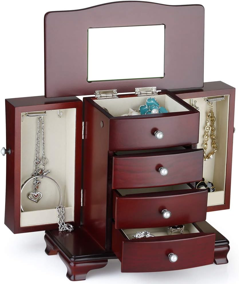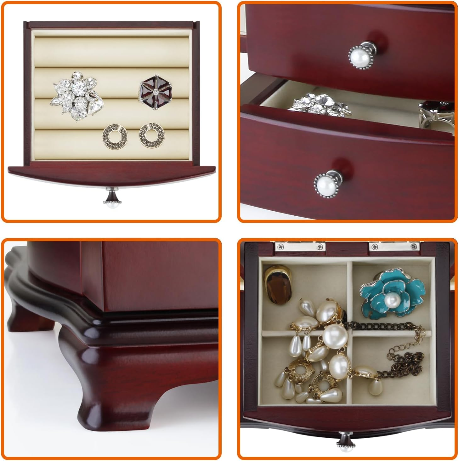 Jewelry Box - Made of Solid Wood with Tower Style 3 Drawers Organizer and 2 Sepa
