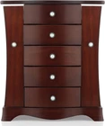 THE ROUND RICH HIGH-GRADE JEWELRY BOX:High-end natural hardwood structure, Anti-Tarnishing velvet lining, exquisite hardware decoration, harmonious color match, highlighting taste and nobility. Packaged in a beautiful GIFT BOX, a gift that women will not refuse! External design:Soft fan-shaped top, Double necklace doors and beautiful pearled door handles and drawer handles provide timeless style and ingenious convenience. 5-Storey tower and large storage space with separate open doors on both sides. Three large drawers and a custom ring drawer, this multi-functional jewellery box is not only exquisite, but also luxurious. Internal Multifunctional Design:4 removable square drawer on the middle, large space storage (It can store necklaces, bracelets, earrings, earpins, hairpins, watches, rings and other jewellery accessories). Large cosmetic mirrors are fitted on top, making it easier to choose jewelry to match your own clothes; 6 Necklace hooks on the top of the doors hung both sides of the open storage space, which can hang a variety of jewlery, and multilayer velvet ring storage device in the bottom drawer. Size:Jewellery box 10.25" x 5.5 " x 11.75" (L*W*H); Drawer Internal Space 4.3" x 3.55"x 1.65" (L*W*H); Mirror Size: 3.2" x 4.8". We provide 24-hour customer service online. If you are not satisfied, you can get a refund within 30 days. Good customer service and product stable quality are always our highest requirements for ourselves. Product Description Solid wooden Jewelry Box Cabinet three-dimensional design, selected materials and fine workmanship create a fashionable look adding decor to your home. Wedding gifts, birthday gifts, this is your best choice! Environmental-protection material,add elegance to this jewlery case, durable. Moisture and corrosion resistant. Velvet liner is moisture and corrosion resistant and offers a clean storage environment for jewelry. Exquisite and removable storage drawers. There are three exquisite hooks on the left and right sides. Hardware accessories of sturdy and durable The velvet ring slot is set in the drawer, which will be better than the vertical ring slot to prevent the rings falling off from the slot.